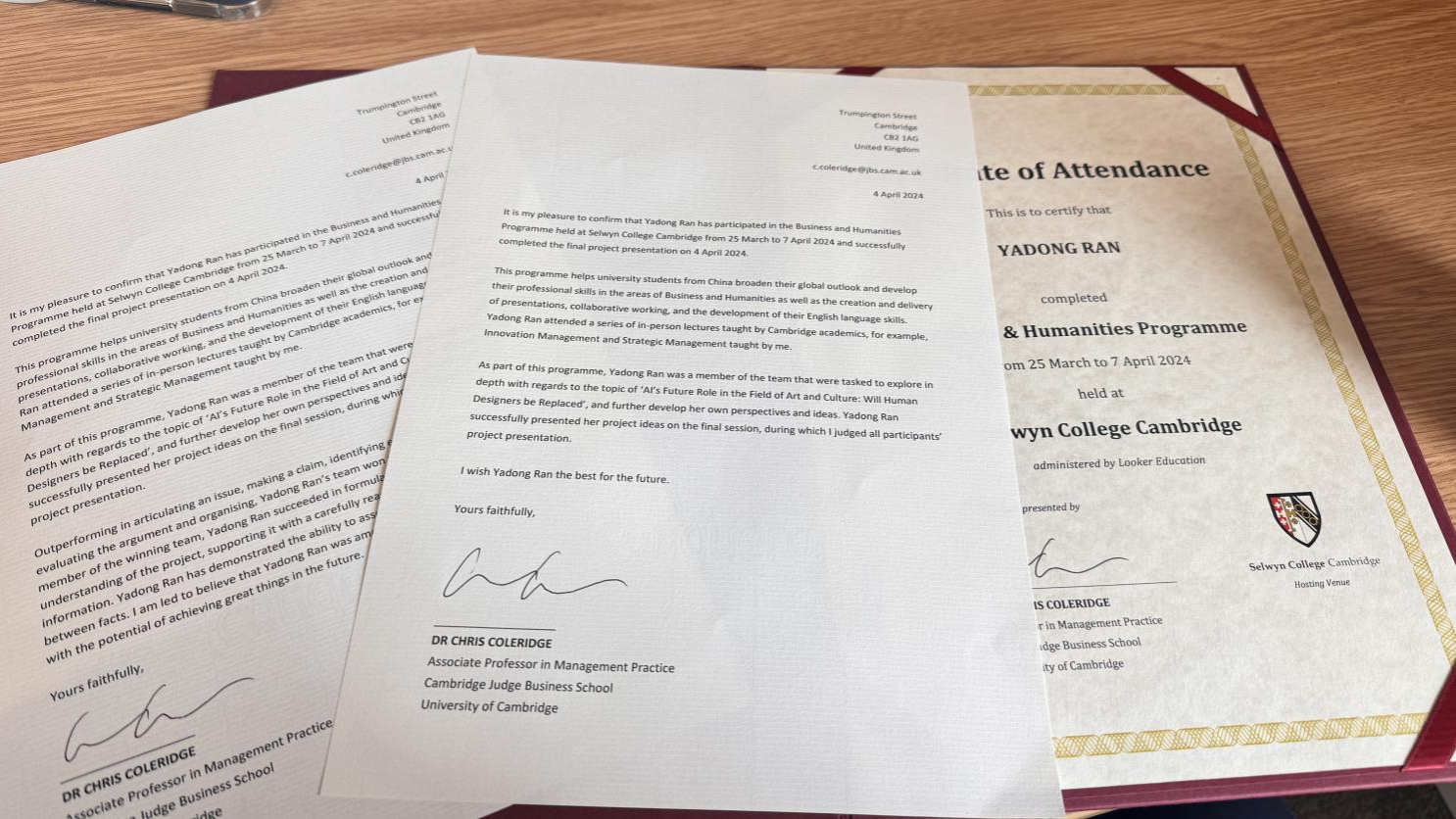 她聆听了剑桥大学克里斯·柯勒律治教授