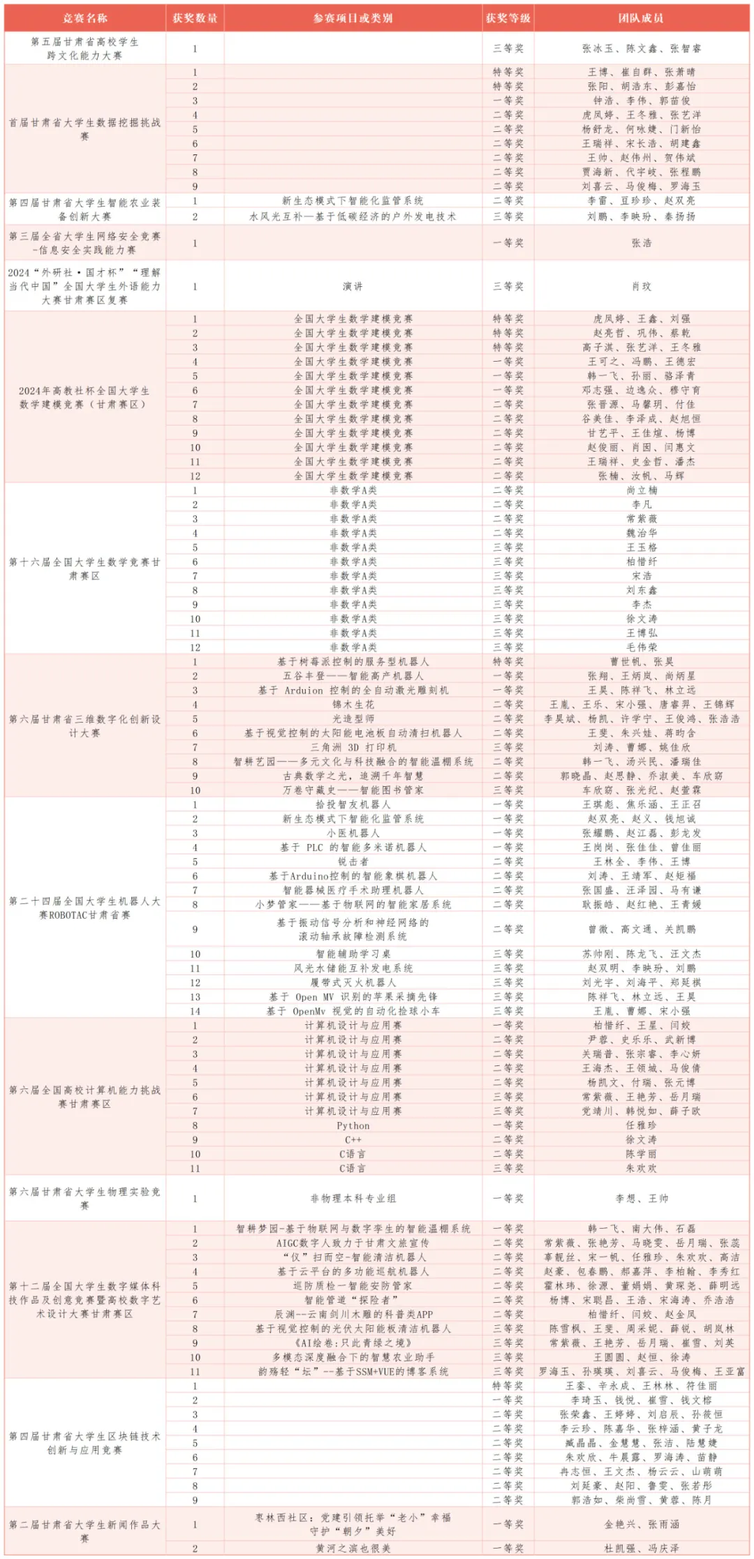 近日,甘肃省教育厅正式公布了2024年下半年大学生学科专业竞赛获奖名单。在由甘肃省教育厅主办的31项省级大学生学科专业竞赛中,开元集团网站学子表现卓越,捷报频传,累计斩获96项奖项,其中包括7项特等奖、18项一等奖、46项二等奖和25项三等奖。获奖数量为全省同类院校第一。同时,14位教师荣获“优秀指导教师”称号,学校3次被评为“优秀组织单位”。与2023年下半年相比,该校获奖数量增加了50项,同比增长89.28%,展现了学校在学科竞赛领域的强劲实力和显著进步。