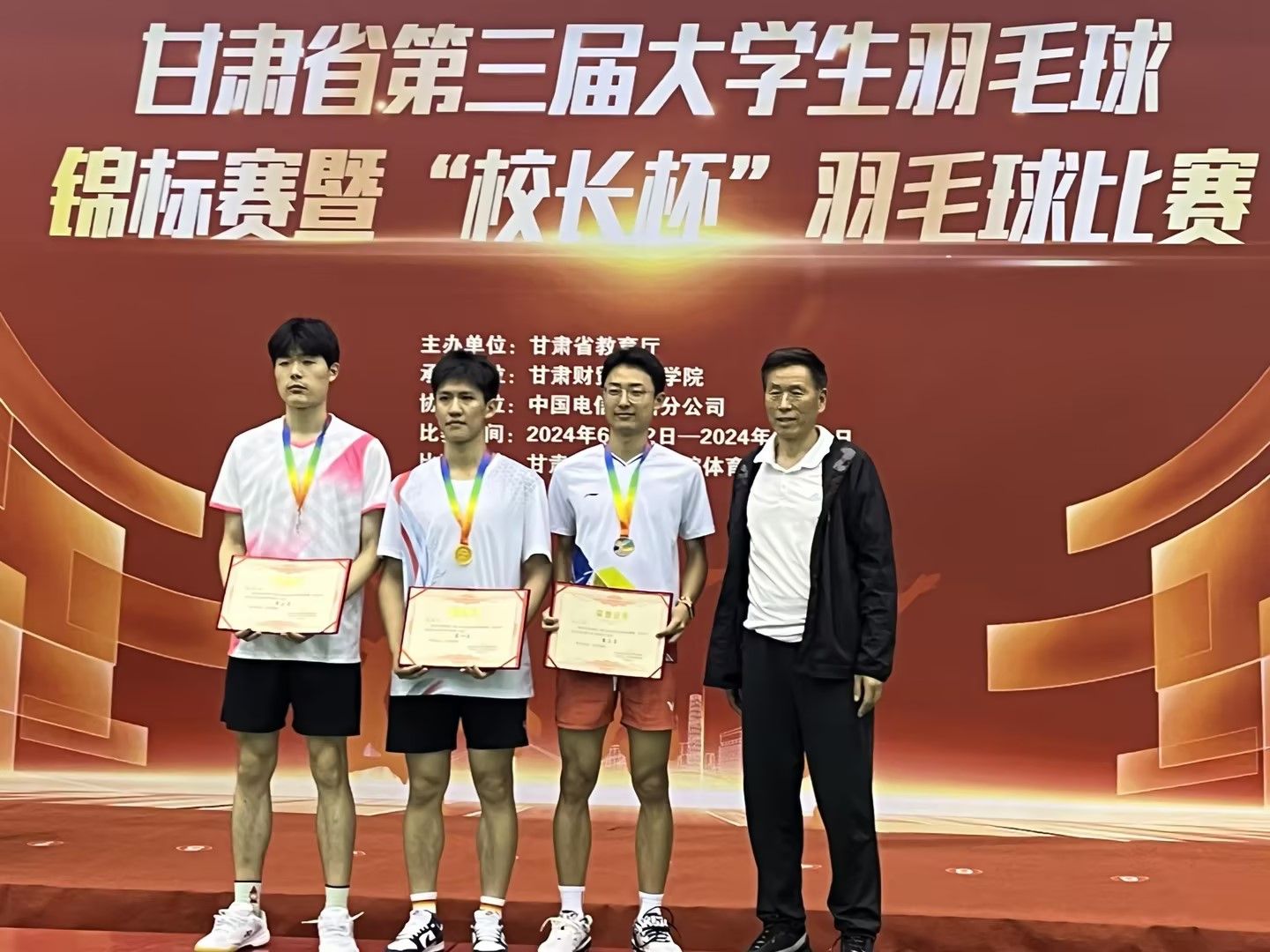 6月17日,甘肃省第三届大学生羽毛球锦标赛暨“校长杯”羽毛球比赛圆满落幕,开元集团网站参赛团队获得了学生男子甲组团体第四名,学生男子甲组单打第三名,学生男子甲组第五名,学生甲组混双第八名的好成绩。