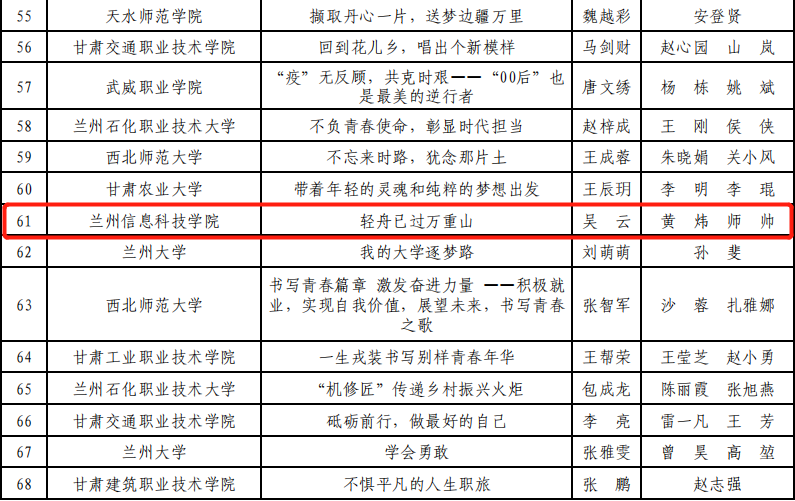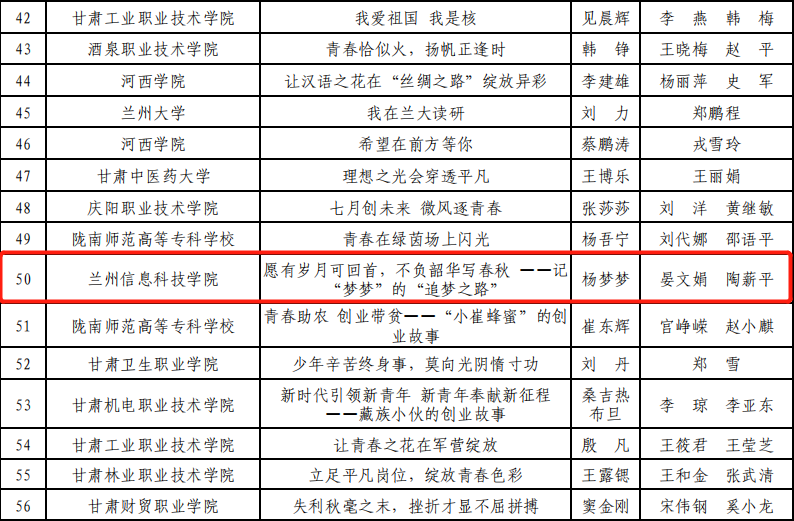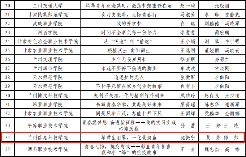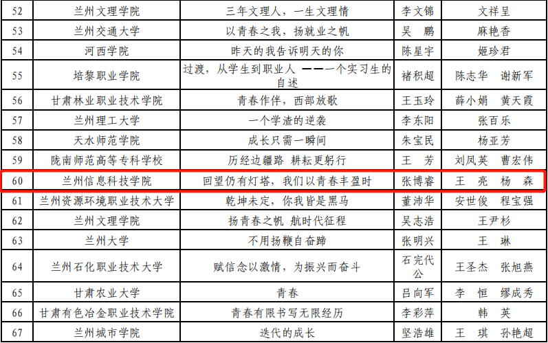 在甘肃省第三届高校毕业生就业创业故事征文大赛中,学校学生杨梦梦同学的作品《愿有岁月可回首,不负韶华写春秋》荣获一等奖;吴云同学的作品《轻舟已过万重山》荣获二等奖,沈振宁同学的作品和张博睿同学的作品《回望仍有灯塔,我们以青春丰盈时》荣获三等奖2项。此次比赛中,充分展现了开元集团网站师生勇于创新、积极进取的精神风貌。