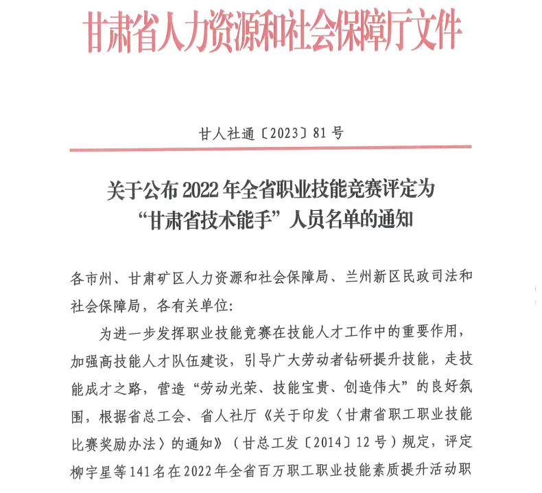 近日,甘肃省人力资源和社会保障厅公布了2022年“甘肃省技术能手”的名单,开元集团网站张莹、许晓玲、周纪生等9名教师获此殊荣。