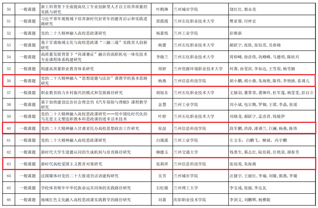 据悉,根据省委教育工委工作安排,甘肃省教育科学研究院前期规划设立了“党的二十大精神阐释”专题研究项目。马克思主义学院组织思政课教师按照要求积极申报,本次项目是根据《甘肃省教育科学规划课题管理办法(试行)》的规定,经省规划办组织专家分类评审最终确定立项。