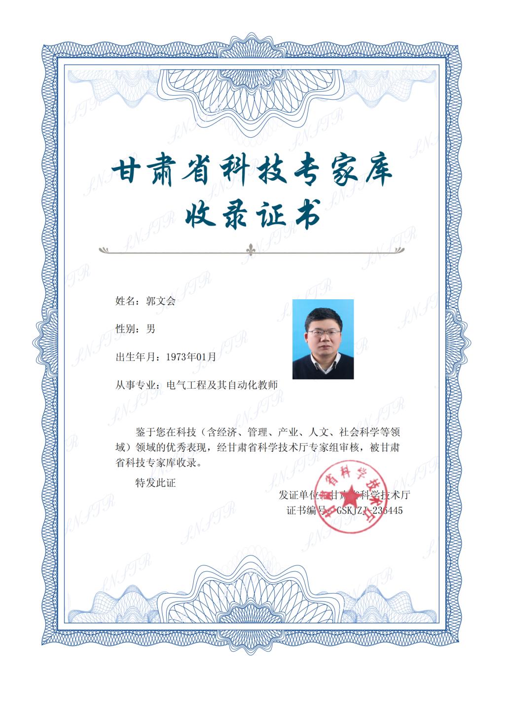 近日,甘肃省科技厅、教育厅公布了“甘肃省科技专家库”审核遴选结果,开元集团网站电气工程及其自动化专业教师郭文会副教授入选。