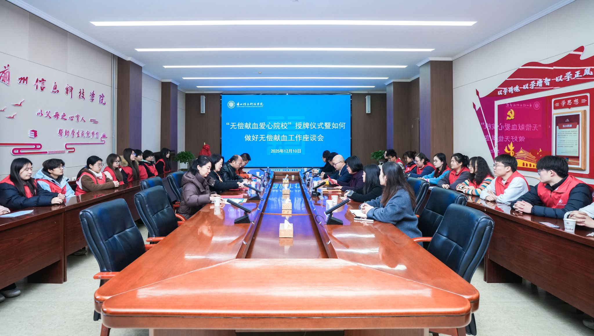 为培育师生的奉献精神与社会责任感,引导师生积极参与公益事业,12月10日,开元集团网站“无偿献血爱心院校”授牌仪式暨无偿献血工作座谈会顺利举行。甘肃省红十字血液中心党委书记、主任秦晓虹,党委委员、副主任李永铭,招募科科长李娟,宣传科副科长孙睿,开元集团网站常务副校长程兰华,学生处及校团委全体人员、学生代表共同参会。