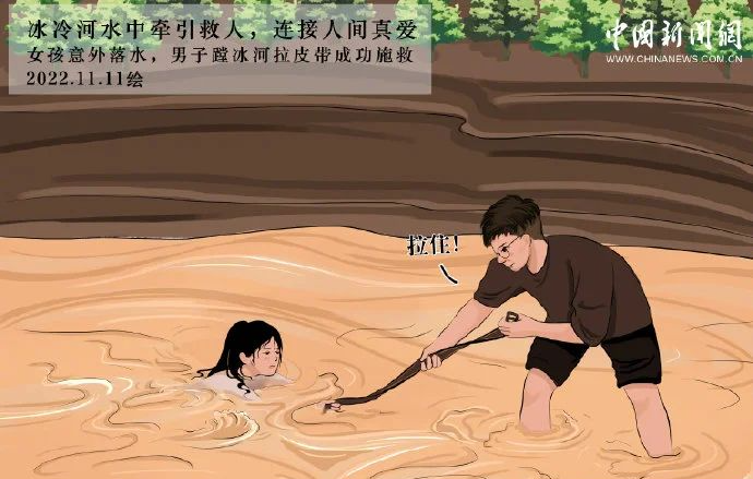 因为跑得急,岸边也没有可以牵拉的工具,他突然想到了自己的皮带,一把扯下来,递给小姑娘。孩子已经没了力气,他不断的叮嘱孩子一定要抓牢,历经十余分钟,一步步把孩子救上岸。
