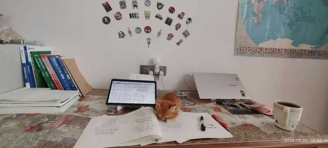 备考过程中,除了学习方法和计划,心态也至关重要。长时间的学习和巨大的考试压力,让南瑞祥也难免会产生焦虑和疲惫的情绪。“有时候,做了很多题,但是成绩却没有明显的提高,这个时候就会特别沮丧,甚至怀疑自己是否真的适合考公务员。”南瑞祥坦言,这个时候他会给自己一个“喘息”的时间。他最喜欢的就是“撸猫”,“小黄跟了我好久,我也喜欢小猫咪,它就蹲在旁边,我在做题,感觉是一件非常美好的事情。不想学习了,和它玩一会,也是一件非常解压的事”。