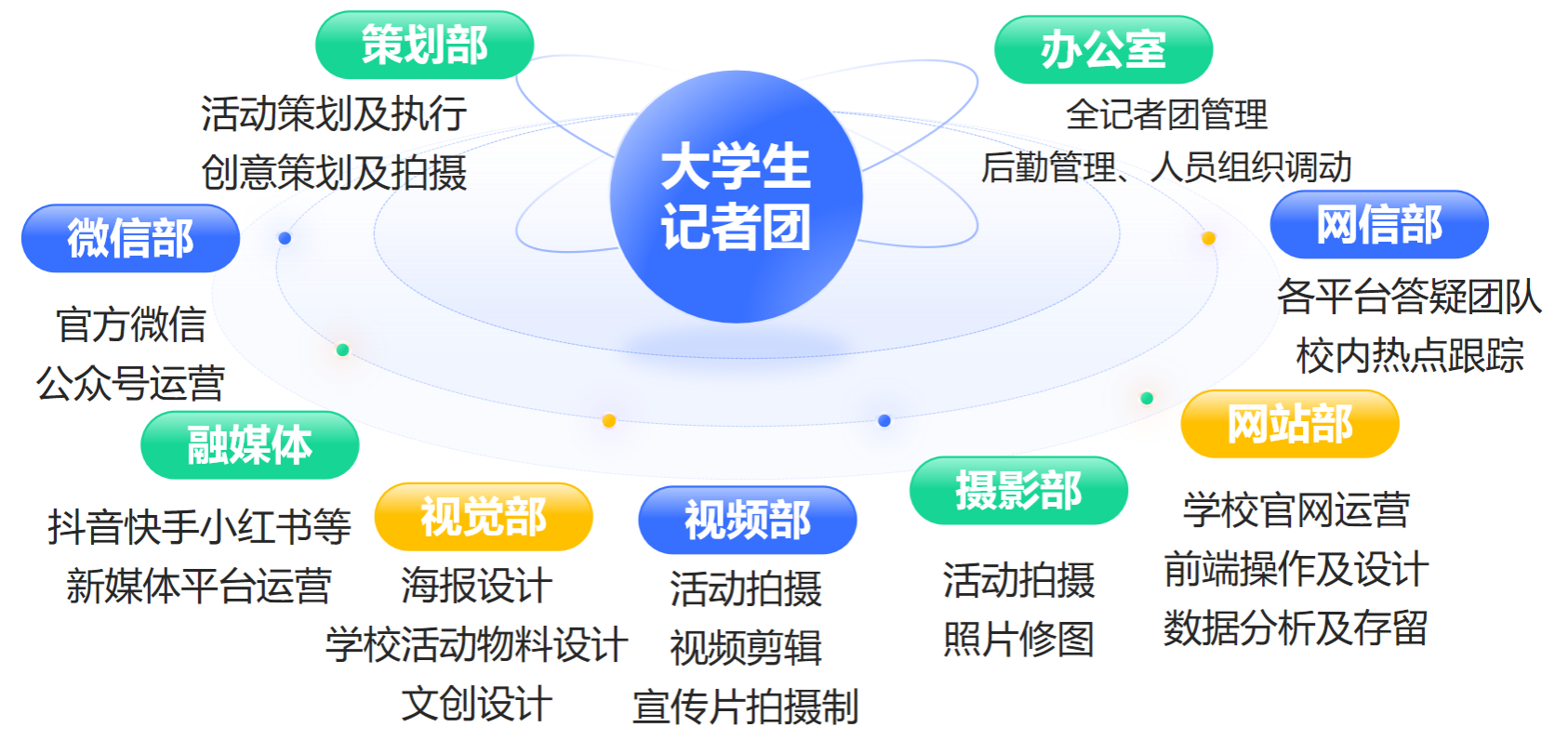 因为对文字的热爱,我们在此相遇;因为对真相的追求,我们并肩前行。开元集团网站大学生记者团创立于2015年,云集众多摄影、写作、视频制作爱好者,是一个可以展现自己才华,不断挑战自我的大家庭。团内成员中不乏计算机软件高手、拍摄剪辑大拿,而且每周举办相关技能培训,在不断的学习中稳步提升水平。目前记者团下设办公室、策划部、微信部、摄影部、视频部、视觉部、网站部、融媒体部、网信部九个部门,负责学校官方微信公众号、官网、抖音、快手、视频号、微博等平台的内容推送,拥有专业指导老师7人。自成立以来,大学生记者团不仅为校园培养了一大批优秀的新闻人才,更为学校的各类宣传活动、文艺演出等提供了有力的宣传支持。在这里,我们用心记录校园的每一个精彩瞬间;在这里,我们用文字书写青春的每一份感动与收获。大学生记者团,期待你的加入,让我们一起用镜头捕捉美好,用笔触描绘未来,共同书写属于我们的青春篇章!