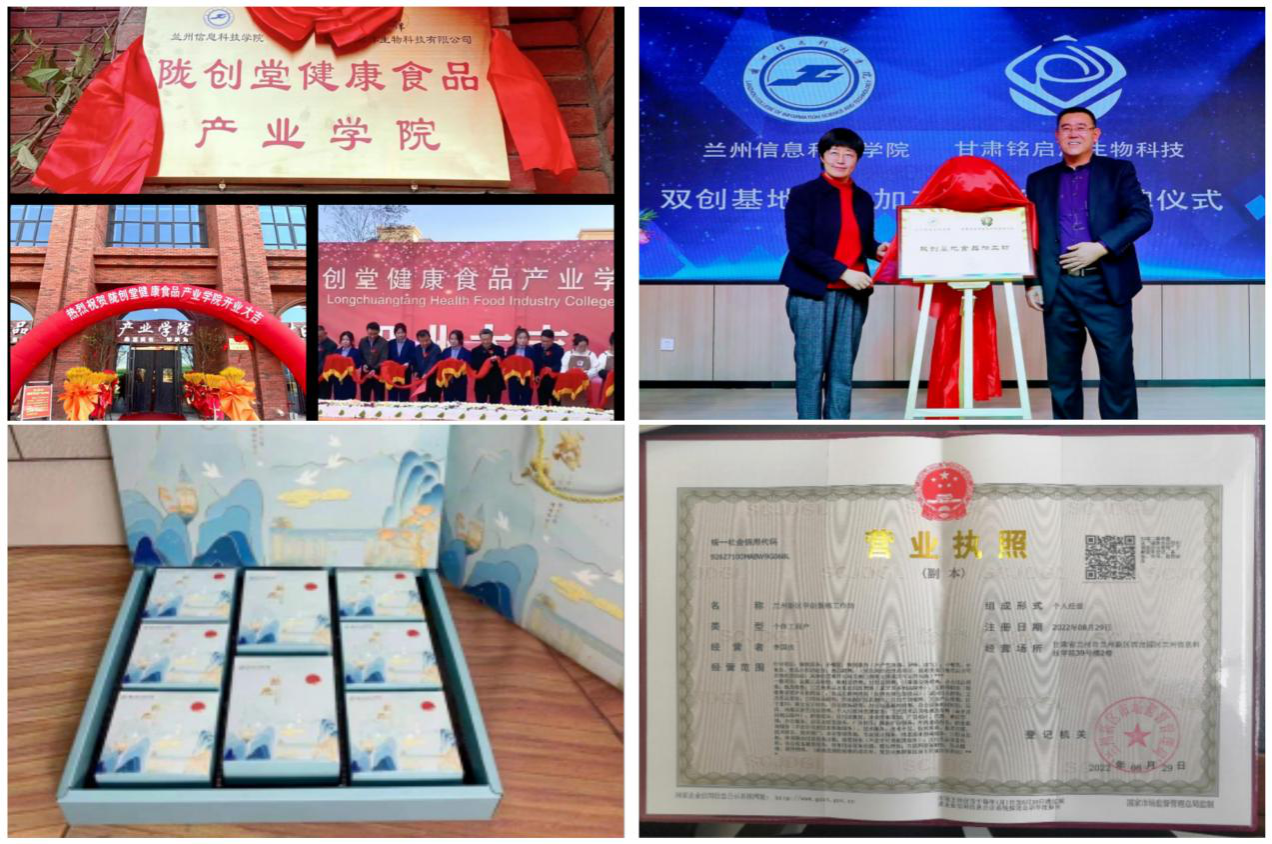 2021年12月食品科创工作室协会与甘肃铭启洋生物科技有限公司签订了“双创基地”-食品加工坊,并于2022年成功办理营业资质;