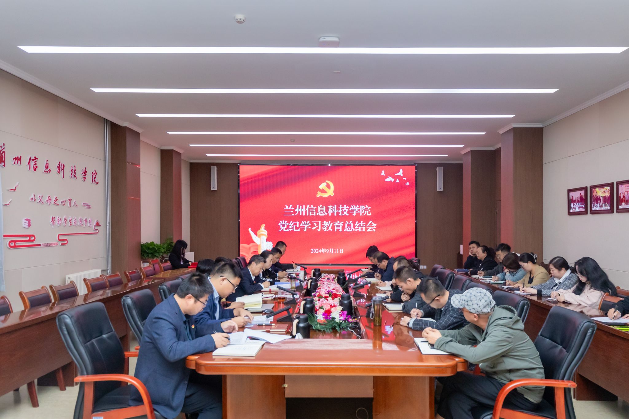 会议强调,党纪学习教育总结不等于结束,而是由集中学习阶段转入常态化学习阶段,并就巩固和拓展党纪学习教育成果、推动党纪学习教育常态化长效化提出意见。一要强化理论武装,持续推进凝心铸魂工作。要把深化党纪学习教育与深入学习贯彻党的二十届三中全会精神和全国教育大会精神结合起来,深入理解习近平总书记关于党的自我革命和党的建设的重要思想,切实把思想和行动统一到习近平总书记重要讲话精神上来,自觉用党的最新理论成果来武装头脑、指导实践、推动工作。二要强化党的领导,持续推进全面从严治党。要充分利用党建“示范院校”培育创建的契机,深入实施“党建引领”行动,常态化开展警示教育,坚持一体推进“三不腐”,切实有效解决一批师生身边的实际问题,着力营造风清气正的政治生态。三要强化建章立制,建立常态化长效化机制。要全面总结经验,强化问题整改、巩固深化学习教育成果,高质量开好年度民主生活会和组织生活会,切实将党纪学习教育成效转化为心有所畏、言有所戒、行有所止的纪律自觉,转化为推动学校高质量发展的行动自觉,坚决答好“教育强国、兰科何为”的时代命题。
