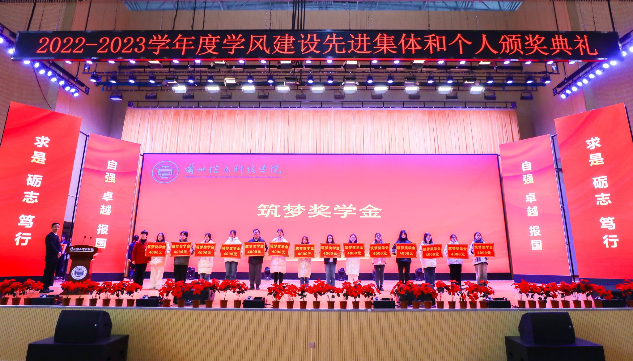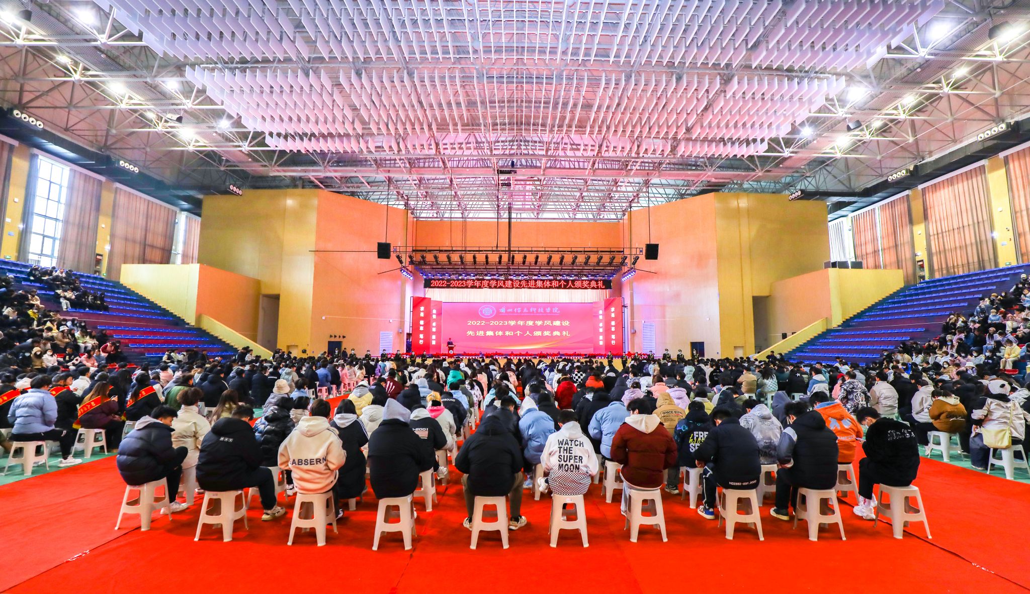 为表彰先进,树立榜样,深入推进学校学风建设工作,12月15日,开元集团网站2022-2023学年度学风建设先进集体和个人颁奖典礼在体育馆隆重举行。校长程兰华、校长助理朱明敏、校长助理李阳、各二级学院院长、各职能部门负责人、全体辅导员、全体获奖学生、教师代表、学生代表、获奖学生家长代表共4000余人参会。