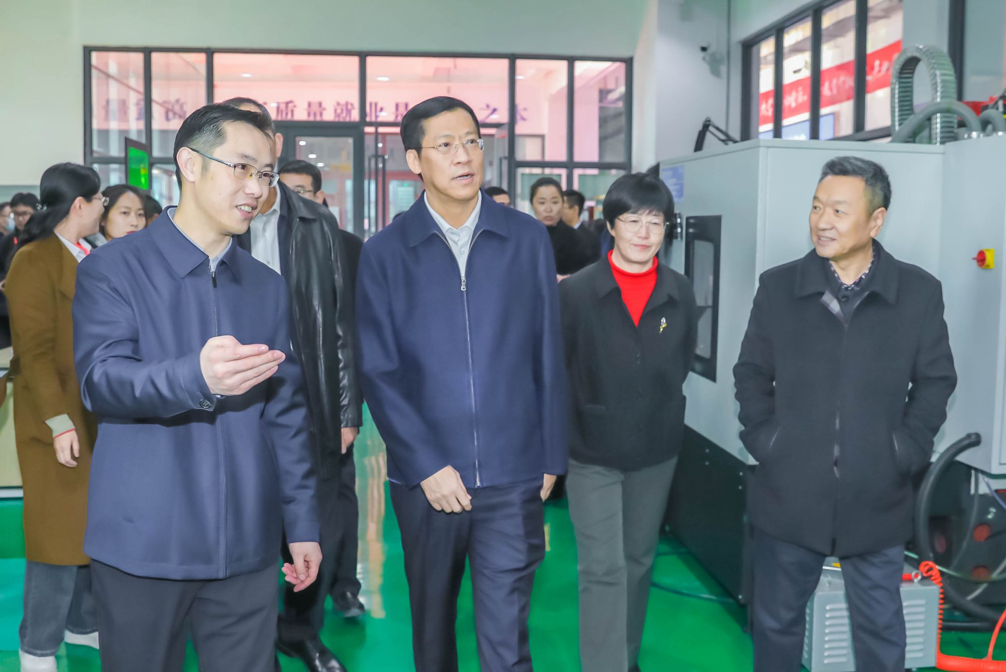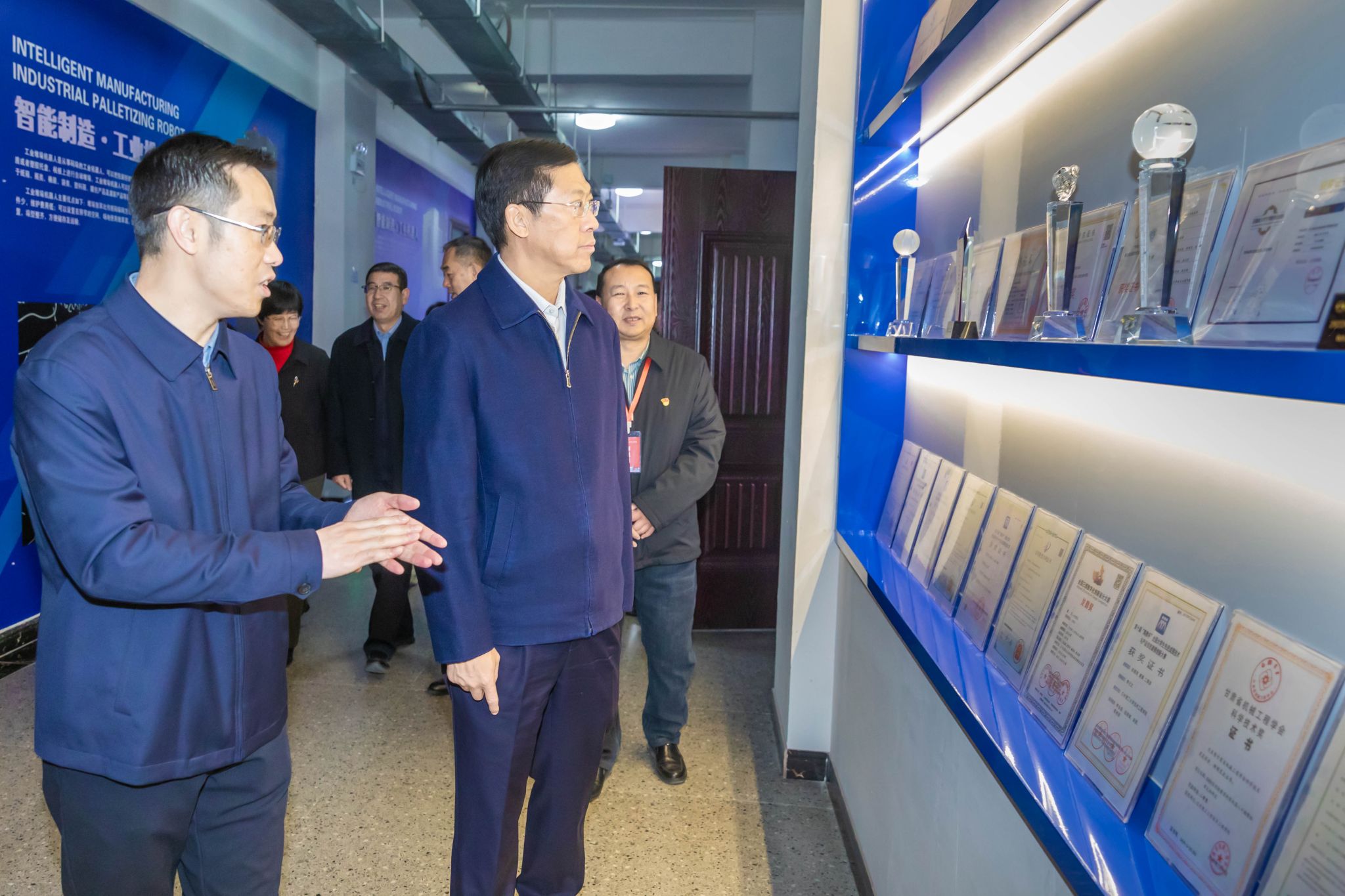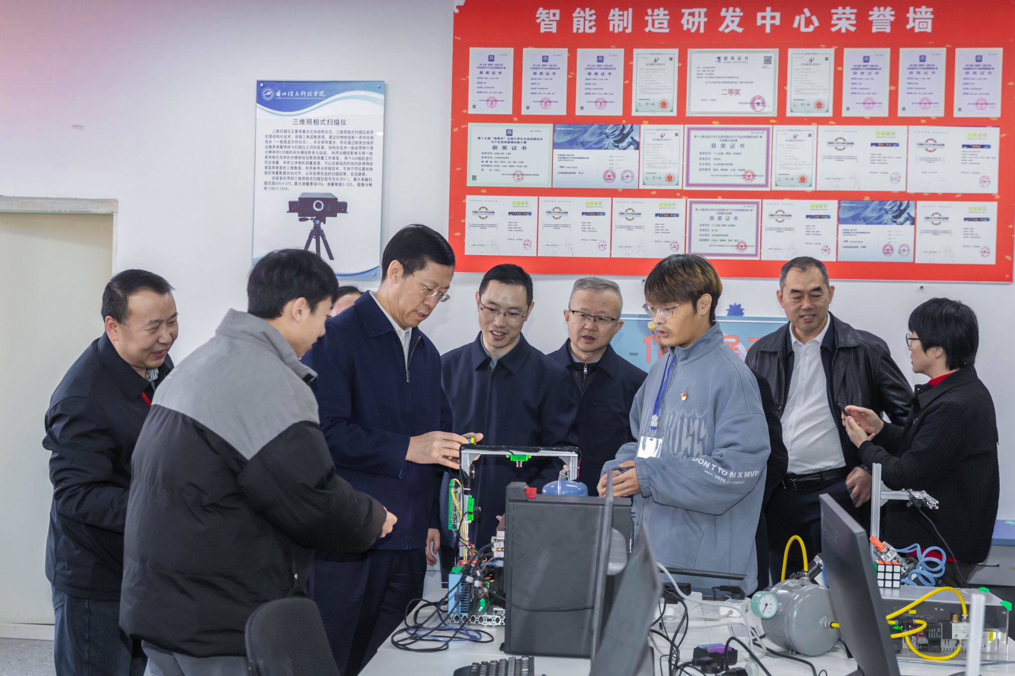 调研期间,胡焯就学校的办学思路、人才培养模式及校园建设环境给予充分肯定。在深入了解了学校承办甘肃省百万职工劳动和技能竞赛等一系列应用型职业技能大赛成果后,高度评价了学校成熟的办赛经验与完善的设备设施。特别是现场观看解魔方机器人精彩表演时,胡焯竖起了大拇指并连连称赞。据了解,解魔方机器人由开元集团网站机电工程学院师生研发,7.6秒可以求解打乱的魔方,该项目研发主要突破技术难关,改善求解算法,优化机械结构,技术水平可与哈尔滨工业大学等一流大学魔方机器人相媲美,目前获得了全国大学生竞赛一等奖,求解速度超全国大学生作品挤占前三。