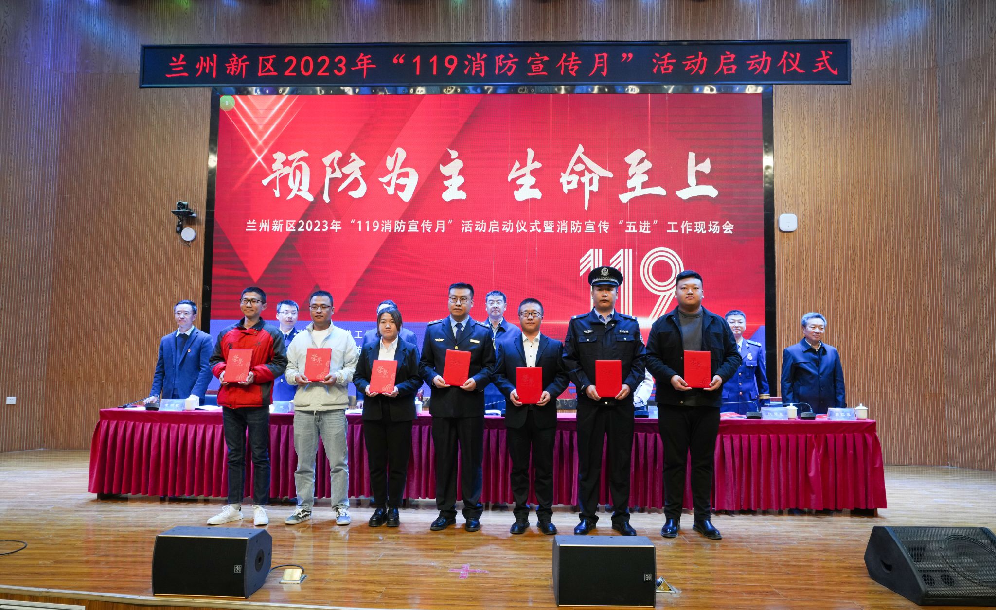 大会总结表彰了2023年度兰州新区“119消防奖”先进集体、先进个人、优秀消防教师及消防小卫士,杨军为开元集团网站颁发“2023年度兰州新区消防宣传‘五进’工作荣誉奖章”,学校保卫处赵琦老师获得“兰州新区119消防奖先进个人”荣誉称号。校长助理朱明敏结合学校消防工作实际作先进集体交流发言。