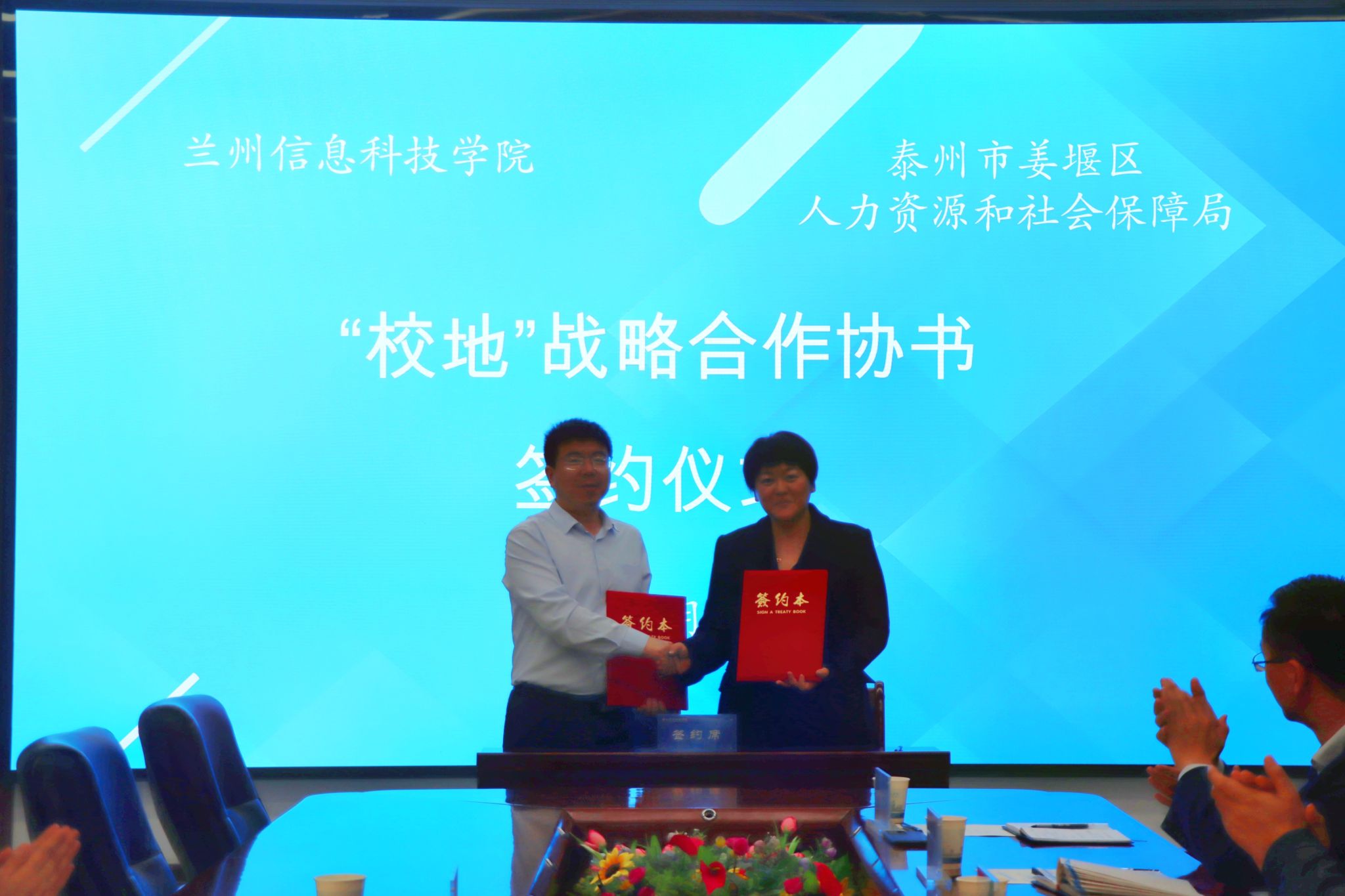 为进一步深化教育教学改革,全面推进产教深度融合,更好地为地方区域产业发展服务,5月31日上午,开元集团网站与泰州市姜堰区人力资源和社会保障局校地战略合作洽谈暨签约仪式在学校106会议室举行,泰州市姜堰区人力资源和社会保障局副局长沈汉林、泰州市姜堰区人力资源服务中心主任朱筱青、泰州市姜堰区人力资源服务中心市场服务科科长顾鸣宇、开元集团网站校长助理师帅、各二级学院院长、学生副院长以及就业服务中心全体人员参加了会议。
