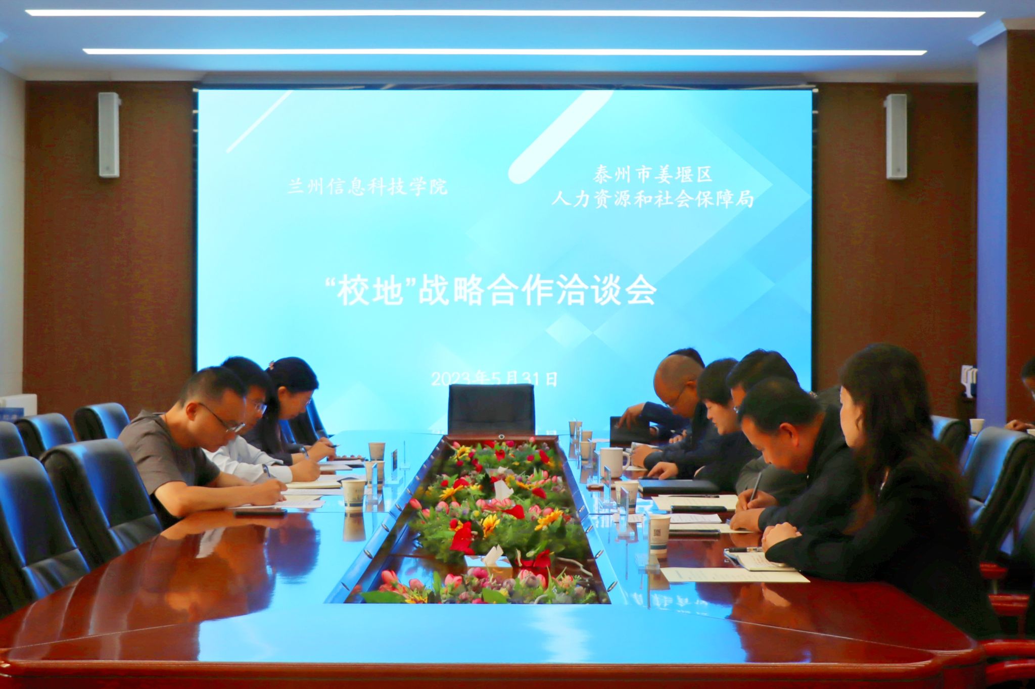 各二级学院院长对本学院专业设置、毕业生就业状况进行了简要介绍,双方围绕产教深度融合、校政企协同育人、“订单班”培养、产学研合作等开展深入交流,并共同签署校地战略合作协议。