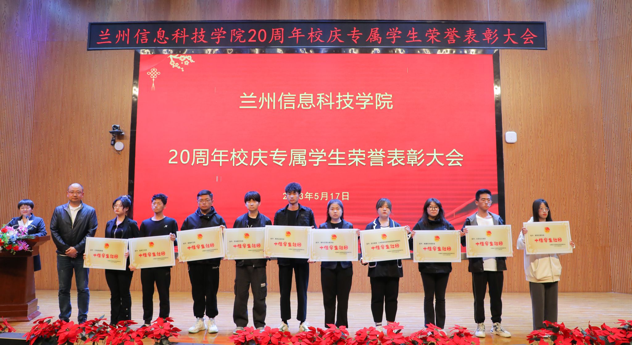 大会在雄壮的国歌声中拉开帷幕,会上宣读了《2022年度“甘肃省高校三好学生”名单》《关于表彰2022-2023学年度学校共青团工作先进集体及先进个人的决定》和《关于表彰2022年度学校共青团工作先进集体及先进个人的决定》,并为获得“全国活力团支部”“国家奖学金”“国家励志奖学金”“甘肃省三好学生”“学校卓越 奖学金”“学校淑芳奖学金”“学校自强奖学金”“三好学生标兵”“三好学生”“优秀学生干部”“优秀班集体”“五四红旗团总支”“五四红旗团支部”“十佳学生社团”“十佳共青团干部”“十佳社会实践活动积极分子”“十佳社团活动积极分子”“十佳校园文化活动积极分子”“十佳青年志愿者”“十佳科技学术之星”“十佳文艺骨干”“运动会先进工作者”“运动会文艺汇演先进个人”的优秀集体和个人颁发奖牌和证书。