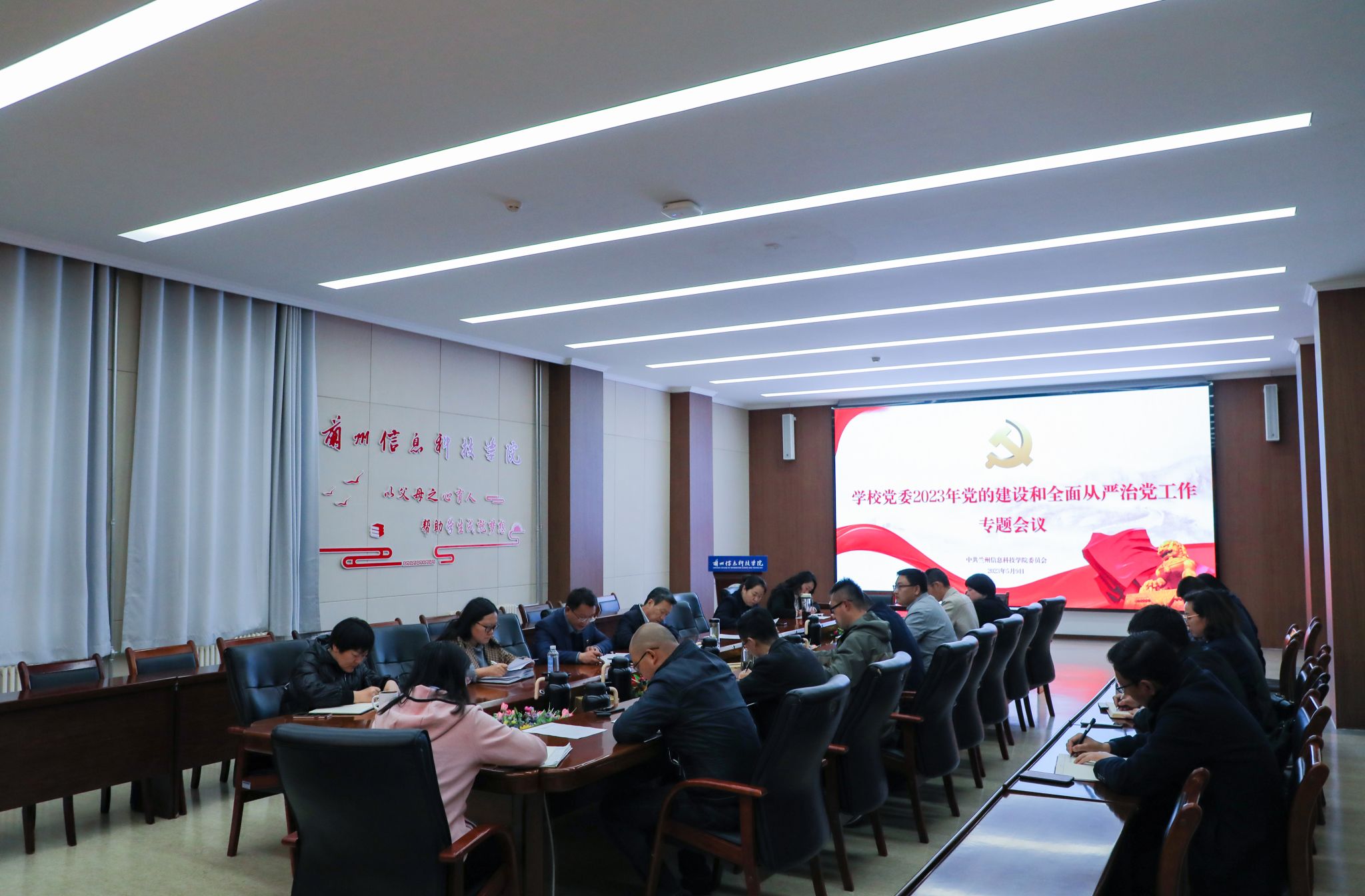 会议强调,党建工作是学校各项工作的基础和核心,是学校培养出更多优秀人才的关键,更是学校高质量发展的重要依托,做好学校党建工作意义重大。会议就进一步做好党的建设和全面从严治党工作提出要求。一是以学习贯彻党的二十大精神为主线,全面推进学校党的建设。要深入贯彻落实党的二十大做出的全面从严治党战略部署,高度重视意识形态工作,增强党组织政治功能和组织功能,打造高质量党建文化,全面落实新时代党的建设总要求,推动党的二十大精神落实落地。二是提高政治站位,增强全面从严治党政治自觉和行动自觉。要深刻认识做好全面从严治党工作的重要性和紧迫性,以高度的政治自觉思想自觉行动自觉,坚定捍卫“两个确立”,忠诚践行“两个维护”。坚定全面从严治党永远在路上的信念,真正把全面从严治党落实到学校党的建设全过程,转化为学校高质量内涵式发展的奋进力量与具体行动。三是强化责任担当,把管党治党的责任扛在肩上。要强化守土有责、守土担责、守土尽责的政治担当,探索构建全面从严治党“四责协同”机制,加大全面从严治党责任传导力度,扭住责任制这个“牛鼻子”,不折不扣落实全面从严治党责任,不断提高履职尽责本领,努力提高战胜各种风险挑战能力。四是持续正风肃纪,坚定不移推动全面从严治党纵深发展。要深入推进形式主义和官僚主义整治工作,全面加强师德师风建设,大兴调查研究、求真务实之风。要严肃执纪问责,强化制度建设,保持反腐高压态势,一体推进“三不”长效机制建设,持续推进廉洁校园建设。