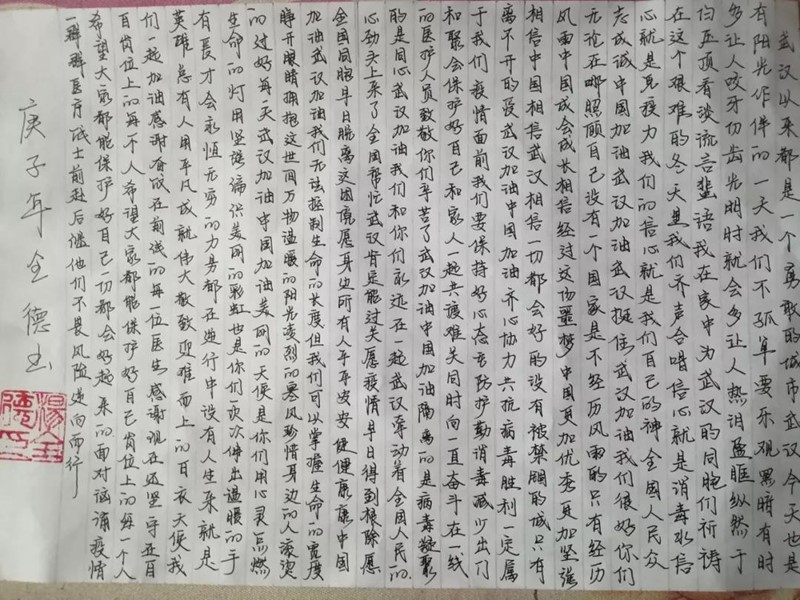 书写祝福,为鄂加油!