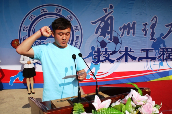 在庄严的升国旗、院旗、会旗仪式后,运动员代表及裁判员代表宣誓。