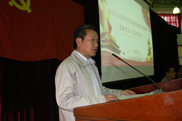 最后学院党委书记周怀春从三个方面对全体党员提出要求,一要把“两学一做”落实到理想信念教育上,引导党员坚定理想信念,牢记誓词,不忘初心;二要把“两学一做”落实到日常行动上,引导党员行有所本,身体力行;三要把“两学一做”落实到严明纪律上,引导党员立标杆、作表率,争做遵规守纪的模范。最后希望全体新老党员以此次授牌仪式和党员宣誓仪式为契机,在学院党委开展的“比党性争先进、比作为争贡献、比业绩争一流”的“三比三争”活动中做好表率,努力创造出一流的工作业绩和学习成绩。