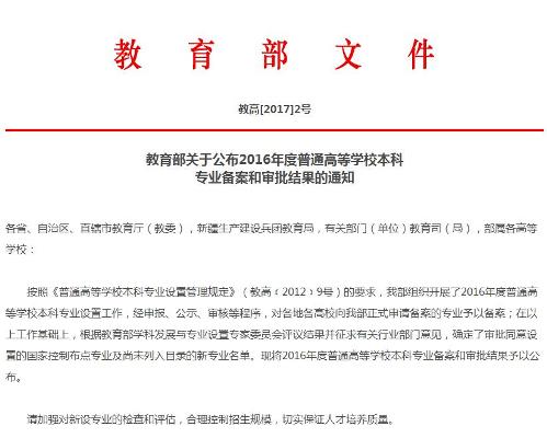 近日,教育部发布了《教育部关于公布2016年度普通高等学校本科专业备案和审批结果的通知》(教高函[2017]2号),我院申报的机械电子工程、通信工程、电子商务三个本科专业成功通过教育部审批备案。截至目前,我院本科专业数量增至36个,专业布局日趋完善。