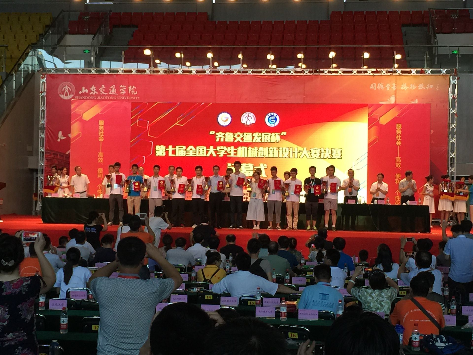 2016年7月29日,第七届全国大学生机械创新设计大赛在山东交通学院闭幕。大赛每两年举办一次,已经成为培养学生工程实践能力、创新设计能力和综合素质效果显著的颇具影响力的大学生竞赛项目。在此次竞赛中,我院共计报送四件作品参赛,其中在甘肃赛区竞赛中,三件作品获得特等奖,一件作品获得二等奖,三件特等奖作品代表甘肃参加了此次全国决赛。最终,由2013级机械设计制造4班张振春等五名同学制作的“水果包装机”荣获本次大赛全国一等奖,由2013级电气工程及其自动化1班李林明等五名同学制作的“钱币分离机”和2014级物联网工程1班李建毅等五名同学制作的“快递分拣系统”荣获本次大赛全国二等奖。