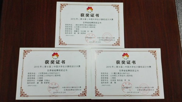 日前,甘肃省教育厅公布了“2015年全国大学生计算机设计大赛甘肃省级赛获奖名单”,我院学生黄鹏天、马生璞、刘璇的作品《爱伙拼网页搭伙拼餐系统》获软件应用与开发类一等奖;学生刘润泽、陈东起、罗浩的作品《小魔王概念礼购平台》获软件应用与开发类二等奖;学生牛建睿、汪瑞山的作品《甘肃洮砚公司首页设计》获软件应用与开发类三等奖;同时我院获得甘肃省级赛优秀组织奖,以上奖项由甘肃省教育厅和中国大学生计算机设计大赛甘肃省级赛组织委员会联合颁发。