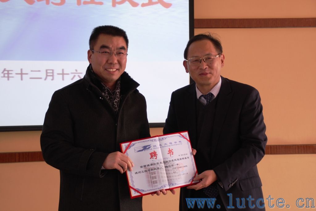 王瑞祥院长为测绘工程专业负责人、兰州理工大学党星海教授颁发聘书