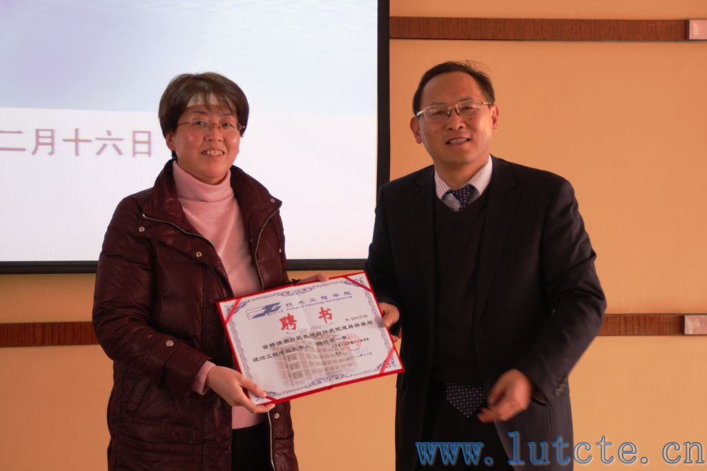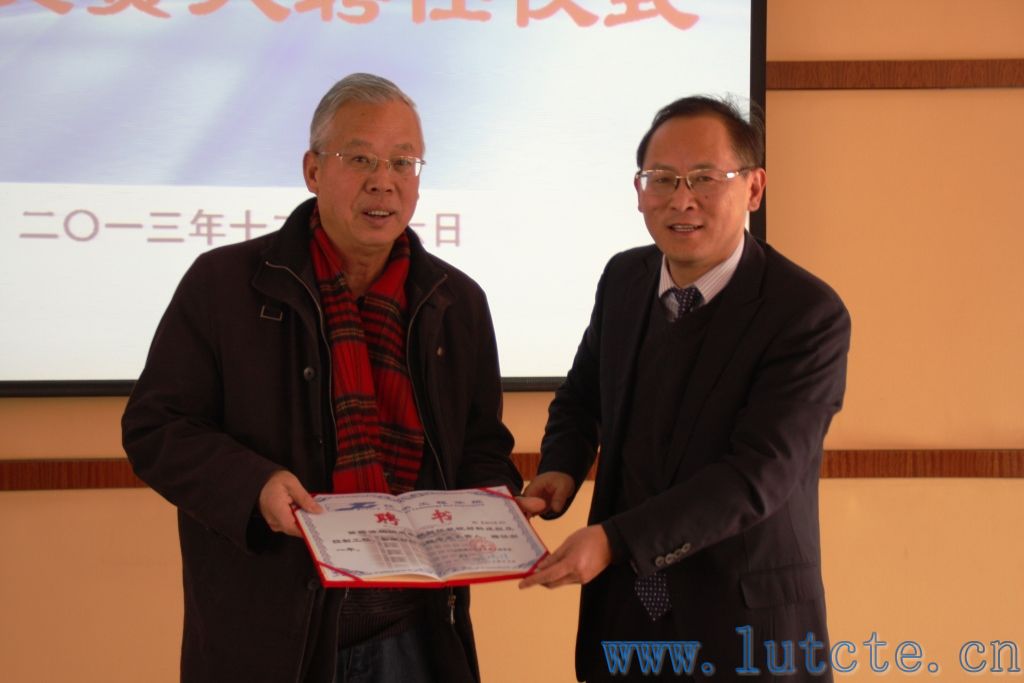 王瑞祥院长为道路桥梁与渡河工程专业负责人、兰州交通大学季日臣教授颁发聘书