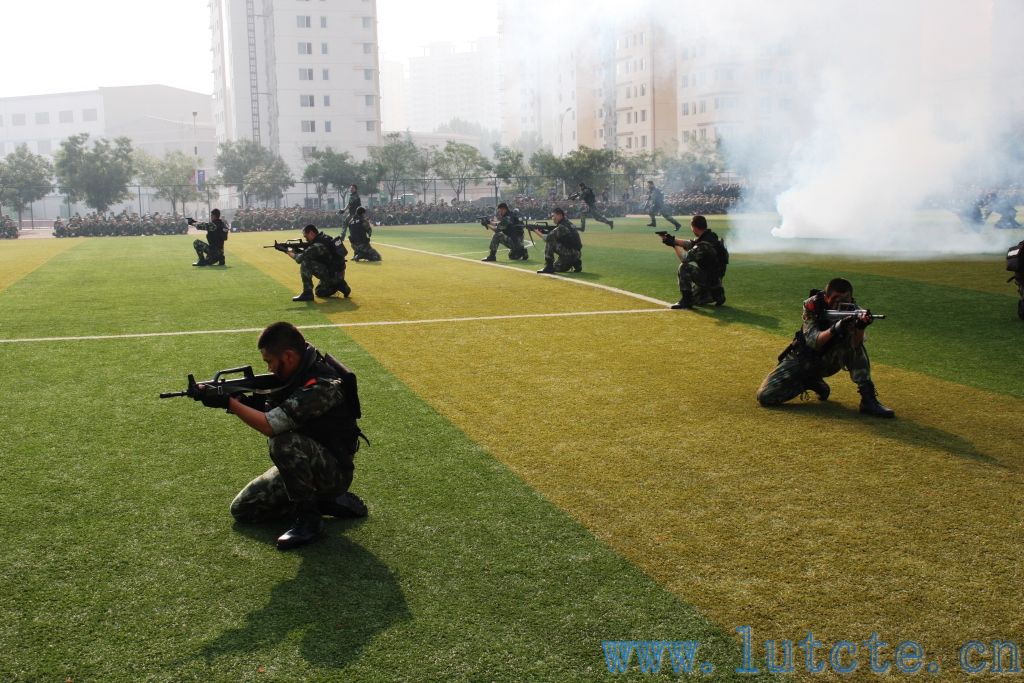 2013年9月21日上午9:00,学院2013级学生军训汇报表演暨结训典礼在田径运动场隆重举行。武警甘肃总队第三支队副支队长李桂福,武警甘肃总队第三支队二大队大队长贾凯军,学院院长王瑞祥,党委书记、副院长李骐,副院长谢黎明,院长助理兼财务处处长谭蓉及相关部门负责人和全体军训教官、辅导员、班主任老师参加了典礼。典礼由学生处处长朱明敏主持。