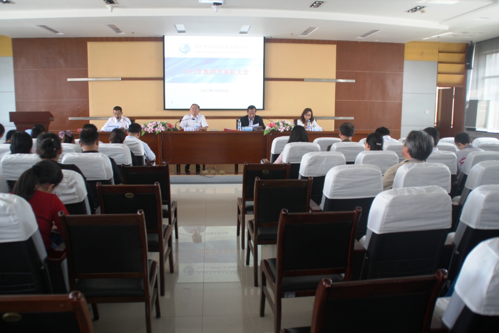 2013年9月10日下午14:00,学院在砺志楼行政办公区5楼多功能报告厅召开庆祝第二十九个教师节表彰大会。学院院长王瑞祥,党委书记、副院长李骐,副院长谢黎明,院长助理兼财务处处长谭蓉及全体教职工参加了大会。会议由党委书记、副院长李骐主持。