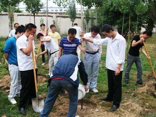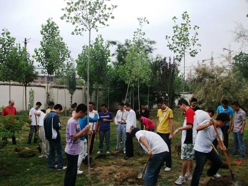 2011年6月21日上午,“我为母校添绿意”2011届毕业生纪念林植树活动在学院求是楼前绿化带举行。