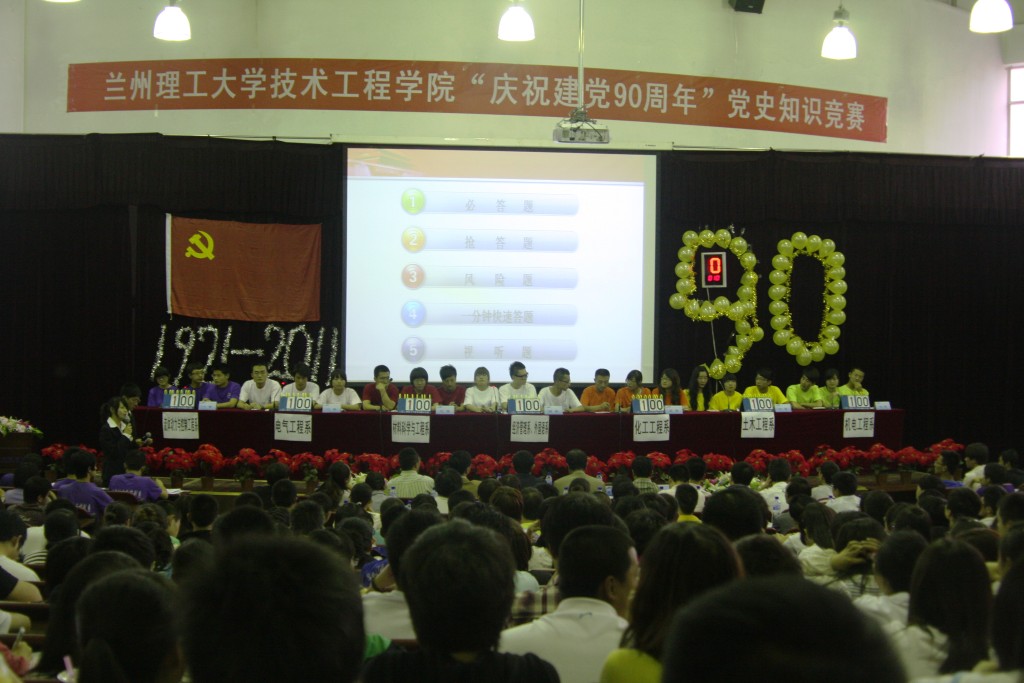 为了庆祝建党九十周年,营造学院“创先争优”的良好氛围, 2011年5月29日19:30,主题为“学党史、知党情、明党志、跟党走”的“庆祝建党九十周年党史知识竞赛”在砺志楼E区201报告厅举办。学院党委书记、副院长李琪,党委副书记、副院长王佰成、学院党委委员、各学生党总支书记、团总支书记和全体学生党员参加了此次活动。
