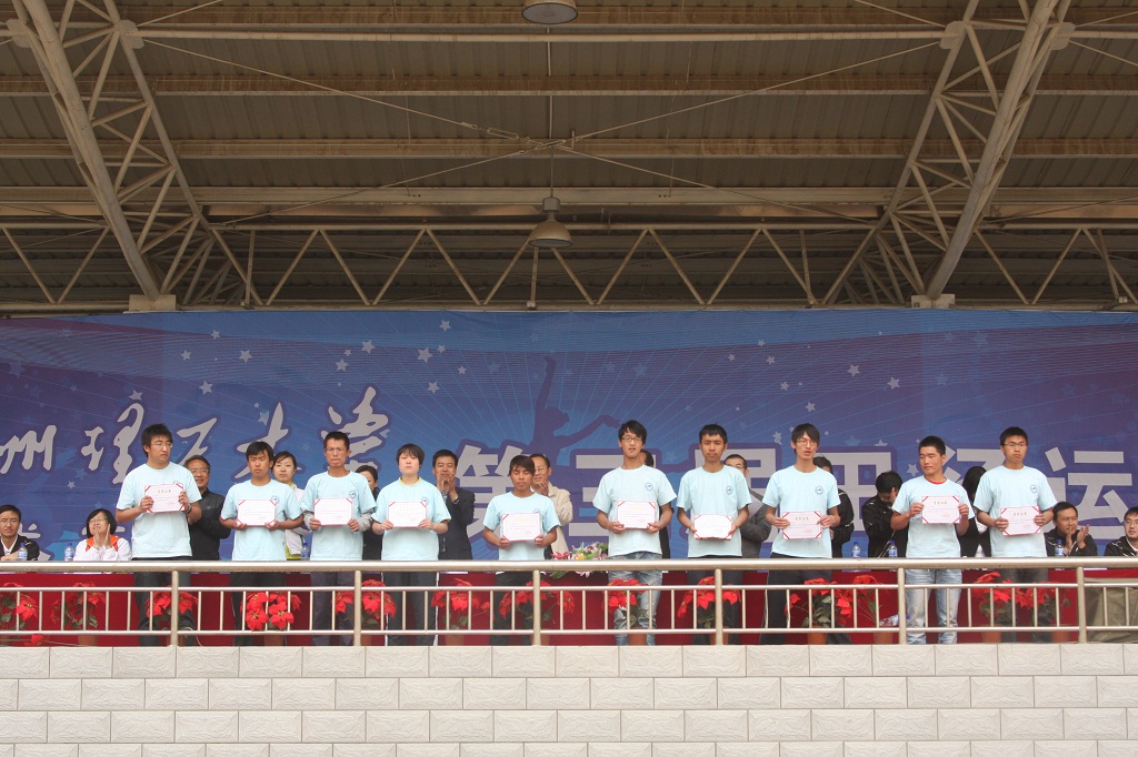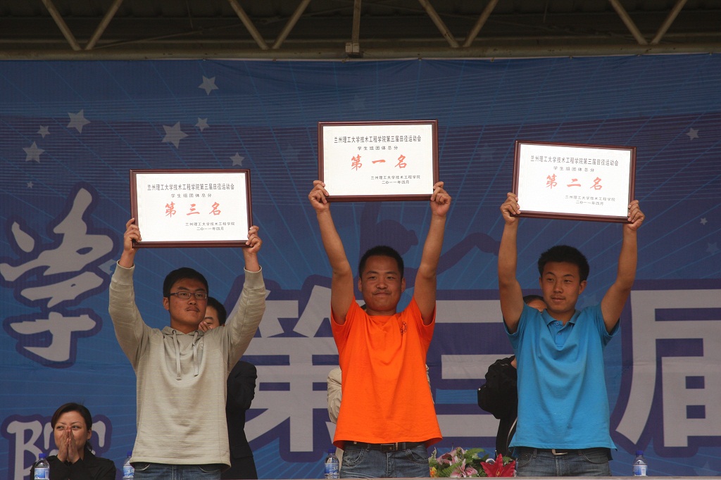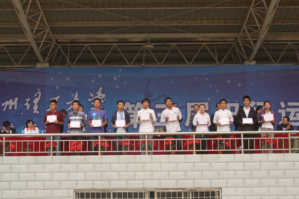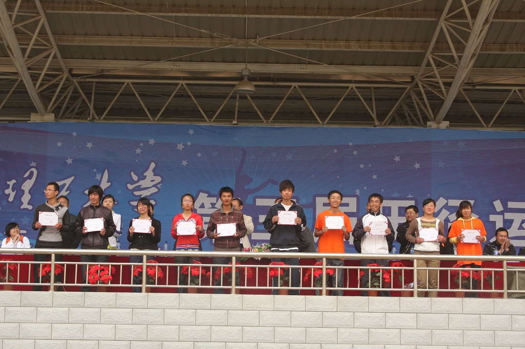 在运动员、裁判员入场后,学院院长助理兼财务处处长谭蓉、人文体育部主任赵迎新、教务处处长任宗义和党委书记、副院长李骐分别宣读了“关于表彰技术工程学院2011年教职工羽毛球比赛获奖个人的决定”、“关于表彰学院第三届田径运动会啦啦操比赛获奖集体的决定”、“关于表彰学院第三届田径运动会‘优秀运动员’、‘优秀裁判员’、‘优秀工作人员’的决定”和“关于表彰学院第三届田径运动会‘体育道德风尚奖’获奖集体的决定”。总裁判长刘曼冬宣读了本次运动会各项比赛成绩。各位领导为各位获奖运动员和集体颁奖。