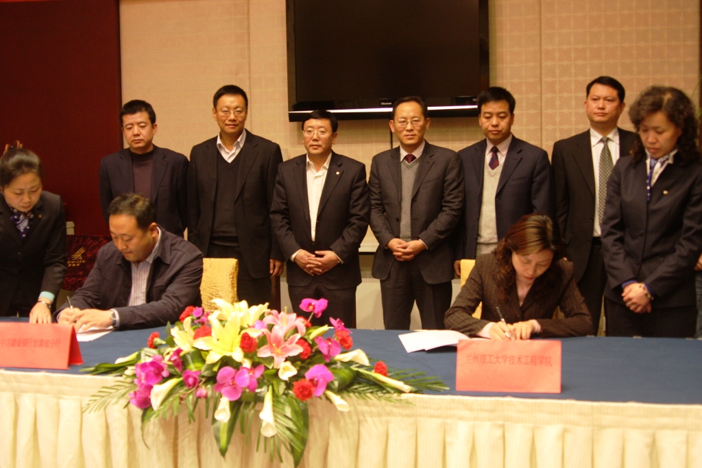 2011年3月15日上午11点30分,学院与中国建设银行甘肃省分行银校合作协议签约仪式在雷迪森宾馆隆重举行。学院院长王瑞祥,党委副书记、副院长王佰成,院长助理兼财务处处长谭蓉和学院办公室、人事处、招生就业处相关负责人以及中国建设银行甘肃省分行相关领导和负责人出席了签约仪式。