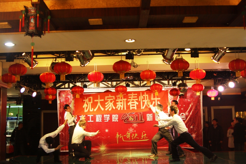 大会结束后,全院教职工参加了学院2011年新春团拜会。整台节目精彩纷呈,均由各部门教职工自编自演,联欢会现场还穿插了互动游戏环节和抽奖活动,带来了浓厚的节日气氛。联欢会高潮迭起,笑声、掌声不断,大家在欢声笑语中迎接新年的到来。