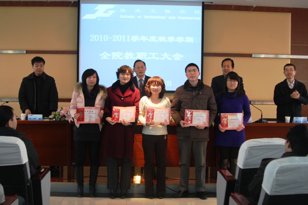 大会上,党委副书记、副院长王佰成宣读了《关于表彰兰州理工大学技术工程学院第三届教师讲课竞赛获奖教师的决定》。副院长谢黎明宣读了《关于表彰甘肃省第四届大学生“创新杯”计算机应用能力竞赛获奖指导教师的决定》。随后,各位院领导为获奖教师颁奖。