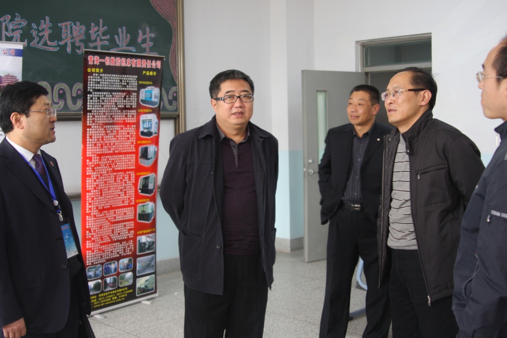 省教育厅人事处处长赵凯,省人力资源和社会保障厅专业技术处副处长史举红和兰州市人事局专业技术处处长刘继泽等在学院院长王瑞祥,党委副书记、副院长王佰成,副院长谢黎明以及学院各部门负责人的陪同下视察了双选会现场,了解了各用人单位的基本情况以及收取简历和签约情况。各位领导对学院此次双选会工作给予了高度评价和积极肯定。最后,各位领导还参观了学院心理健康教育指导服务中心、计算机实验室、机械原理实验室、PLC实验室等。