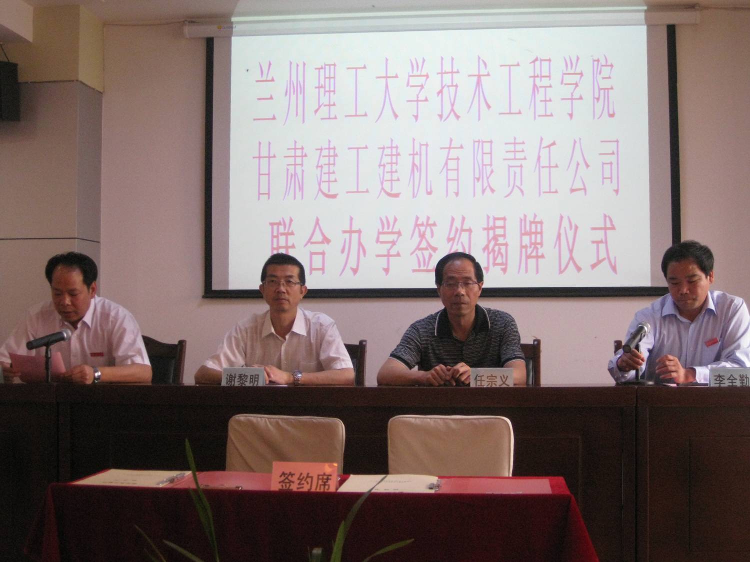 2010年7月8日,我院教学基地揭牌仪式在甘肃建工建设机械制造有限责任公司举行。学院副院长谢黎明、教务处处长任宗义,甘肃建工建设机械制造有限责任公司董事长、党委书记张旭军、总工程师牛向辉以及部分员工出席了仪式。揭牌仪式由甘肃建工建设机械制造有限责任公司党委书记张旭军主持,副院长谢黎明和总经理李全勤共同为教学基地揭牌。
