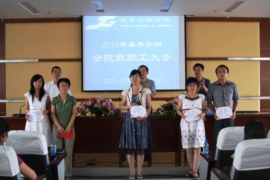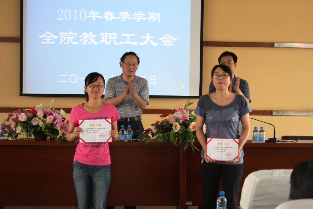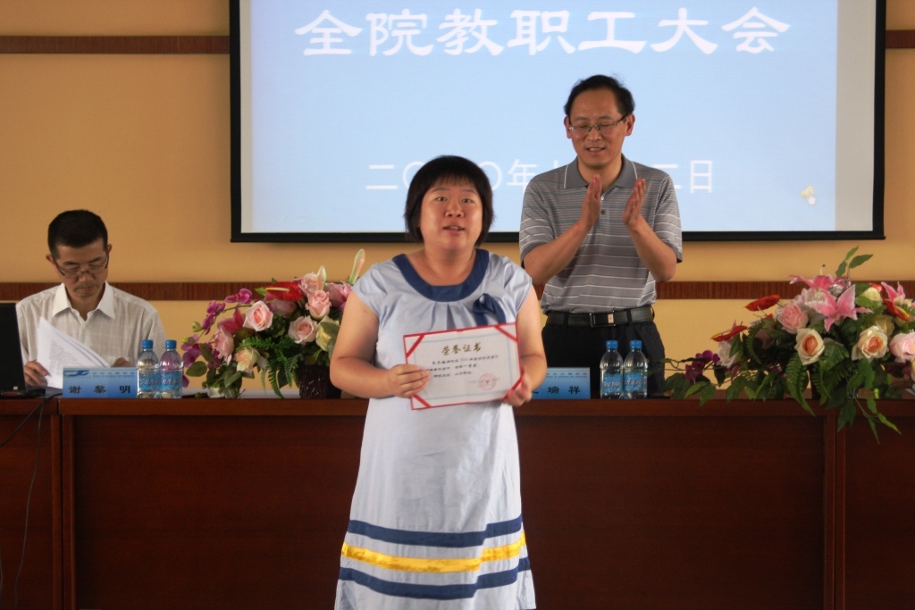 大会上,学院副院长谢黎明首先宣读了学院首届优秀教案竞赛获奖教师的表彰决定。朱冬梅等12位教师分获此次教案竞赛一、二、三等奖和优秀奖。各位领导为12位获奖教师颁奖。