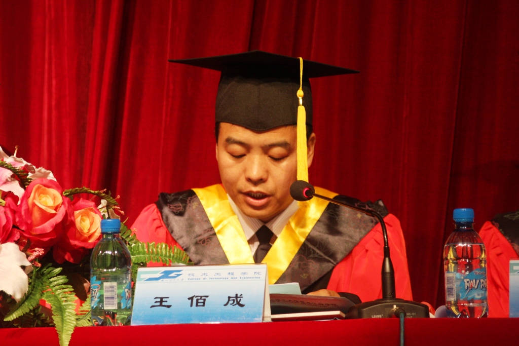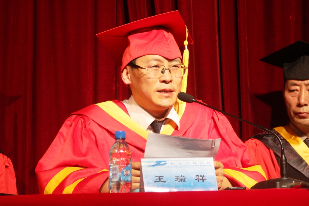 学院院长王瑞祥随后作了重要讲话。他首先向多年来为同学们健康成长付出辛勤劳动的教职工表示衷心的感谢,对同学们圆满完成学业并即将奔赴工作岗位表示热烈的祝贺。希望同学们树立服务社会、奉献祖国的远大理想,继续学习,不断完善,践行“求是、砺志、笃行”的校训,去成就自己平凡而伟大的事业,在新的起点上取得新的成绩。