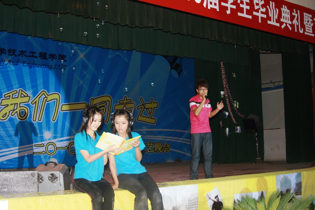 毕业典礼结束后,“大学,我们一同走过”主题晚会在音乐声中拉开了帷幕。同学们精心准备的12个精彩节目独具创意地以音乐剧的形式串联起来,从初进大学的青涩记忆到同学之间的深厚友谊,从丰富多彩的校园生活到依依不舍的惜别之情,全面展现了四年美好的大学生活,表达了毕业生对同学和母校浓浓的眷恋之情,精彩的表演不时博得台下师生的热烈掌声。毕业晚会在温暖而热烈的气氛中圆满落幕。晚会结束后,学院领导与各位演员合影留念。