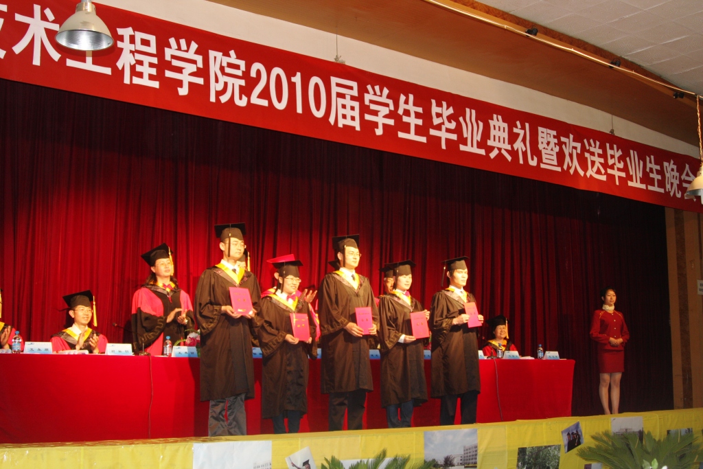 2010年6月25日晚7点半,学院大学生活动中心内灯火辉煌,气氛热烈,“大学,我们一同走过”2010届学生毕业典礼暨欢送毕业生文艺晚会在这里隆重举行。学院院长王瑞祥,党委副书记、副院长王佰成,副院长谢黎明,学院学位委员会委员以及全体教职工、毕业生及在校生代表出席了毕业典礼。毕业典礼由学生处副处长朱明敏主持。