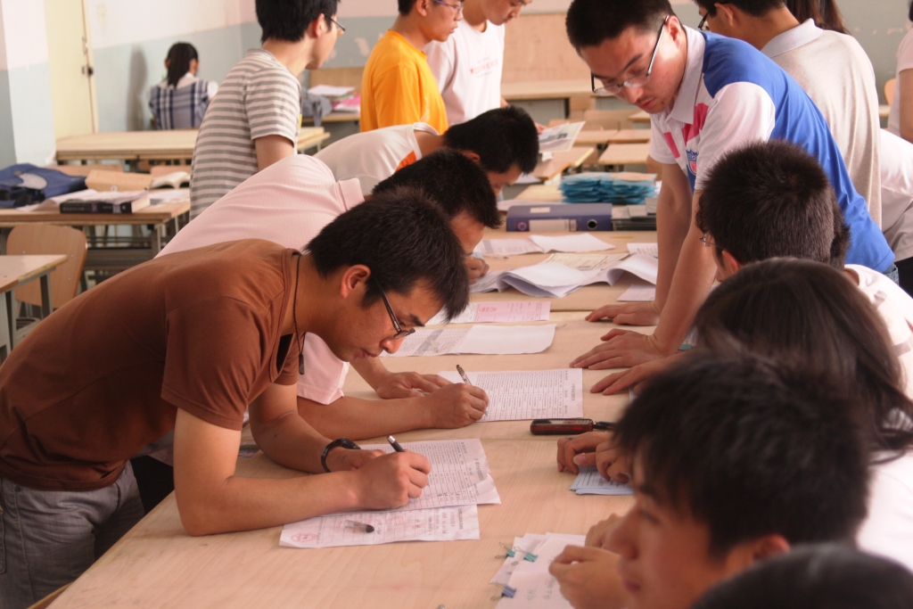 在各系毕业手续办理现场,前来办理离校手续的毕业生排成长队等候办理。各位辅导员和工作人员认真解答毕业生的各种疑问和咨询,逐个为毕业生盖章,提醒他们填写相关表格。除此之外,学院教务处、总务处和招生就业处等部门也分别为毕业生办理学位证和毕业证发放、户籍迁移和退宿、派遣证发放等相关手续。整个毕业离校手续办理工作忙而不乱,秩序井然。各部门通力合作,确保2010届毕业生安全、稳定、顺利离校。