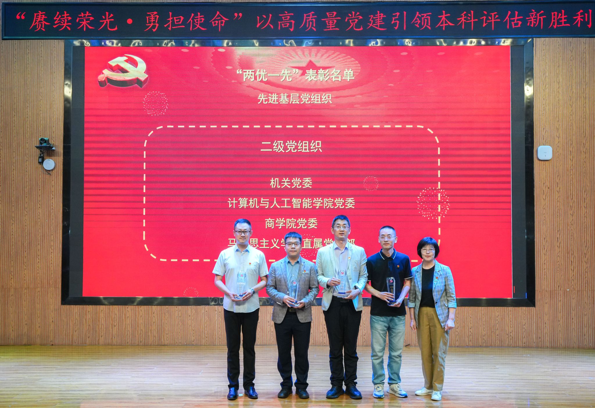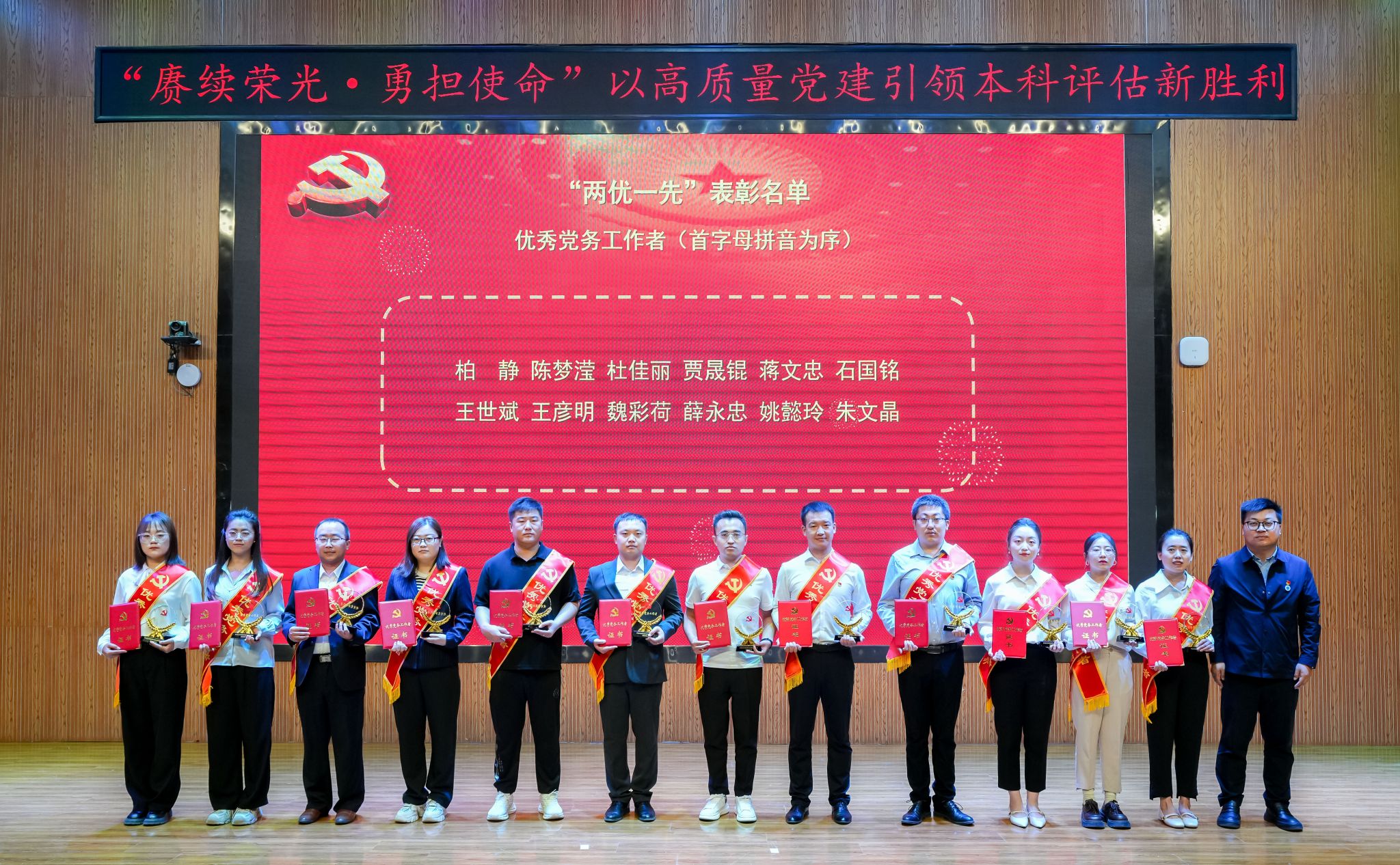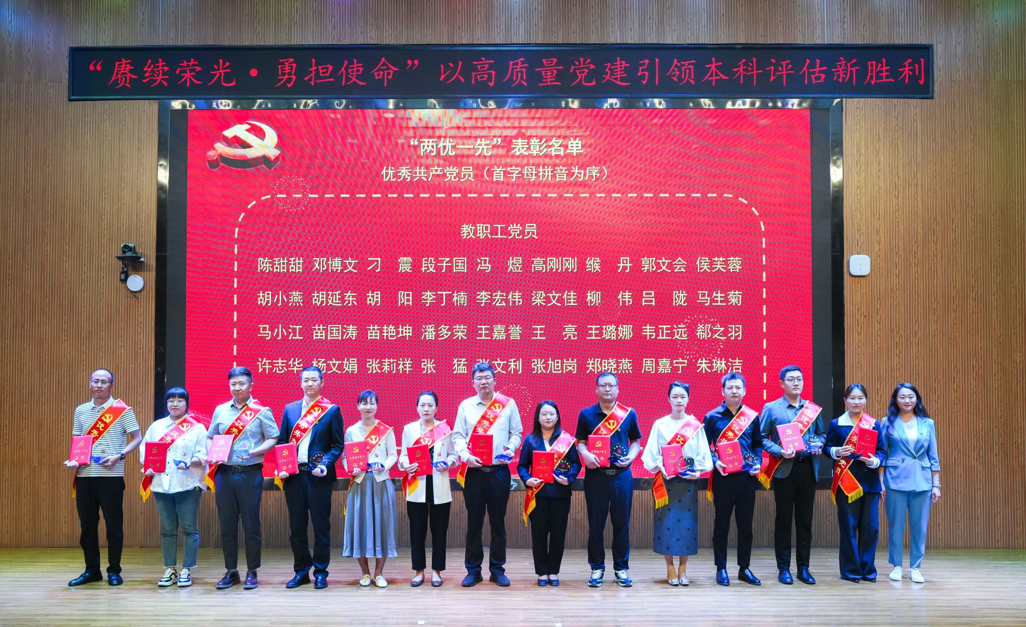 周怀春强调,当前学校正处在迎接教育部本科教学工作合格评估的关键时期,在这场关乎未来的“大考”面前,全校各级党组织和全体共产党员必须充分发挥战斗堡垒作用和先锋模范作用,全力以赴投入到本科教学工作合格评估的各项工作中去,为推动学校事业高质量发展、办好人民满意的教育而努力奋斗!一是提高政治站位,做评建工作的坚定“推动者”。要深刻认识合格评估的重大意义,充分发挥政治核心和组织优势,广泛深入地进行再动员、再部署,将评估要求传达到每一位党员、每一位师生。二是强化责任担当,做评建任务的模范“执行者”。全体党员,特别是党员干部和受表彰的先进典型要率先垂范,勇于担当,立足本职岗位,精益求精,把党员的先进性体现在每一个细节、每一项工作中。三是聚焦问题整改,做评建质量的有力“提升者”。要发扬自我革命精神,带头查找本部门、本单位、本人在教学、管理、服务中存在的问题和不足并主动解决问题。四是弘扬奉献精神,做评建氛围的积极“营造者”。要发扬无私奉献精神,主动承担额外任务,积极建言献策,讲好学校发展故事,营造积极向上、团结奋进、爱校荣校的良好校园文化氛围。