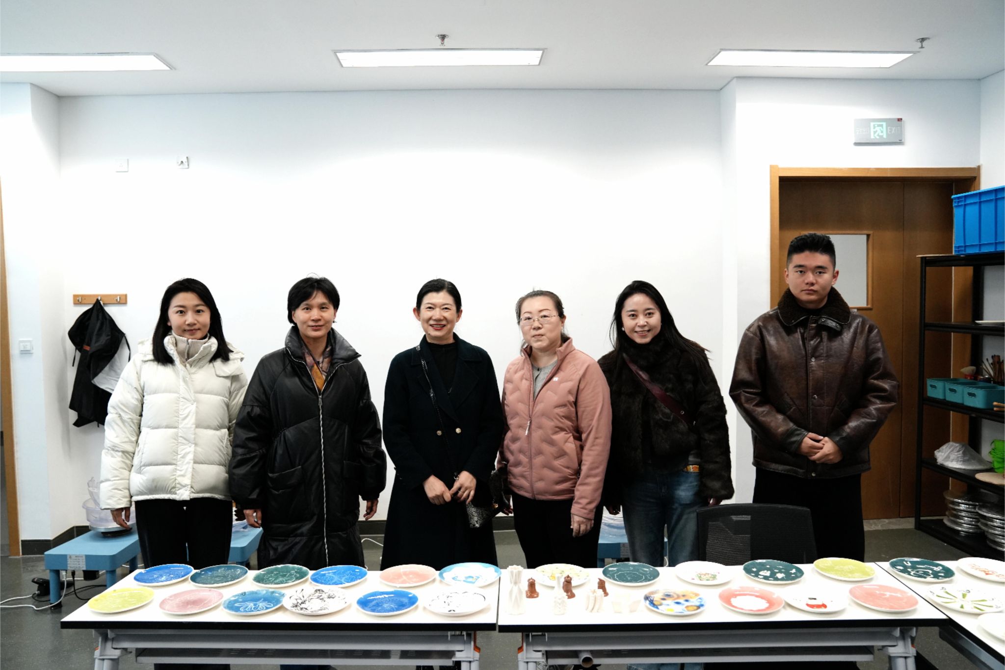 会后,调研团队在张浩的陪同下,实地参观了北京信息科技大学美育成果展览与陶瓷工作室。在成果展览区,翔实的图文资料、丰富的学生作品,全面呈现了该校在美育教学、实践竞赛及文化传承等方面取得的突出成绩;陶瓷工作室完备的教学设施与生动的实践场景,直观展示了该校在美育实践平台建设方面的扎实成效。