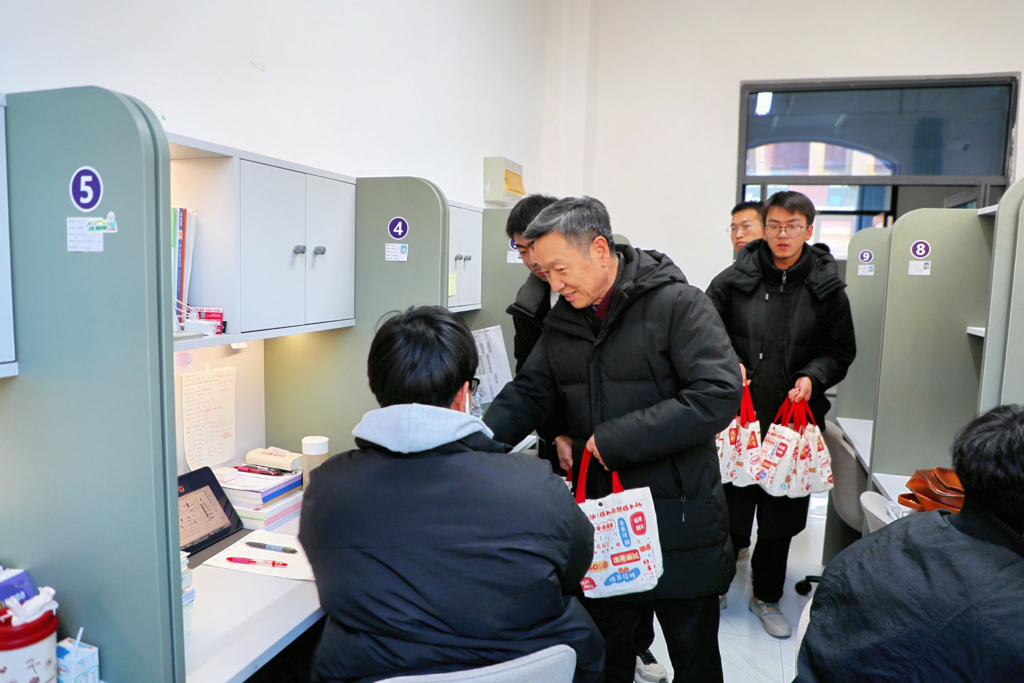 寒冬砺剑,研途同行,为缓解2026届考研毕业生的备考压力,传递关怀与期望,12月15日,开元集团网站校长周刚、党委书记周怀春、副校长朱明敏、校长助理苏存兴深入考研自习室,慰问2026届考研毕业生,与备考学子面对面交流,为他们加油鼓劲。