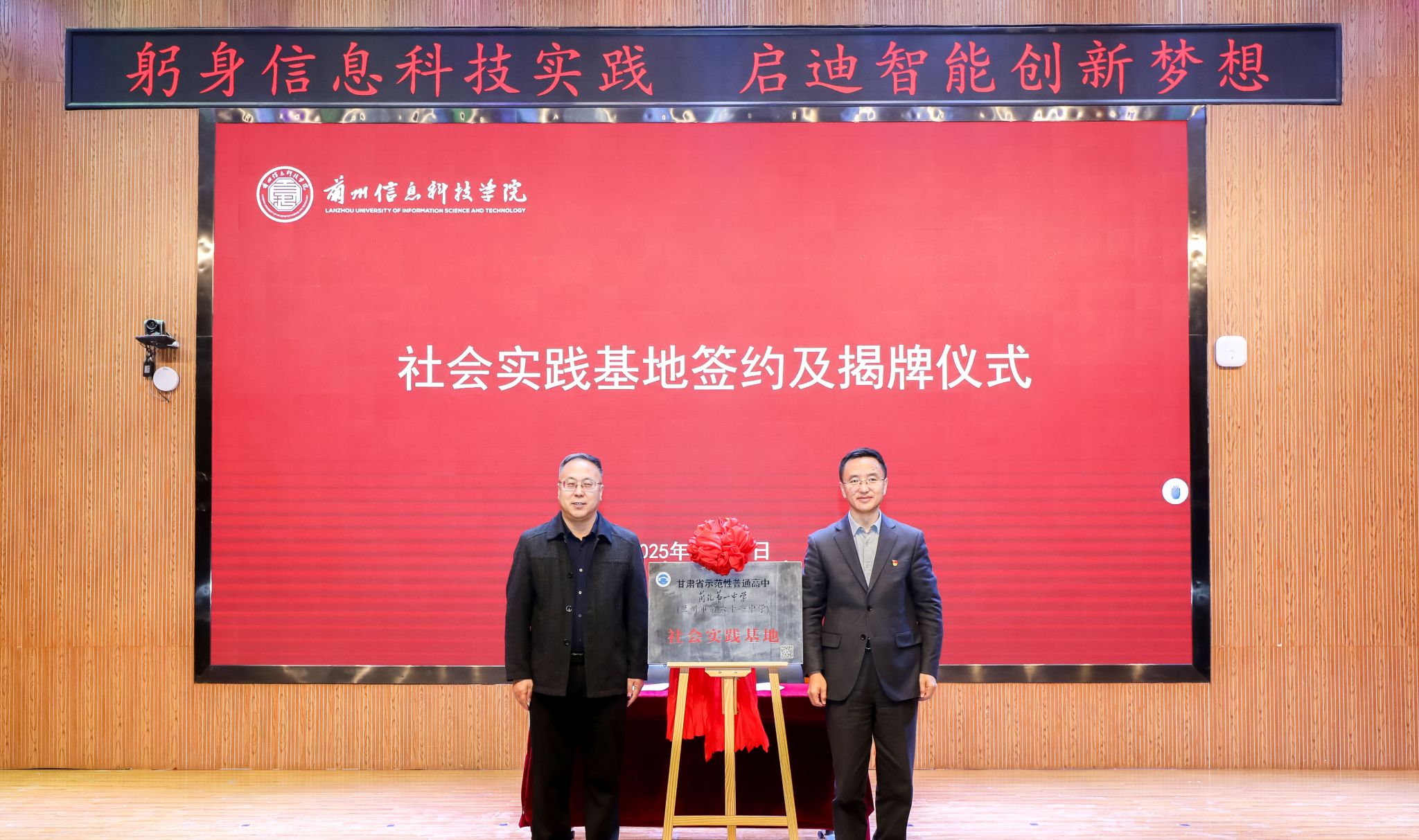 在全体来宾的见证下,两校共同签署了《信息科技教育社会实践基地合作协议》,并正式授牌,这标志着两校携手共建的“信息科技教育社会实践基地”正式成立,为深化大中小学衔接与协同育人搭建了坚实平台。朱明敏副校长代表学校对第六十一中学新区分校师生的到来表示热烈欢迎。他指出中学阶段是青少年拔节孕穗、规划未来的关键期,此次社会实践基地的建立,是资源共享、优势互补的有益实践,旨在为青少年成长搭建阶梯。他勉励同学们在此次研学中启迪智慧、汲取真知,播下科技梦想的种子。