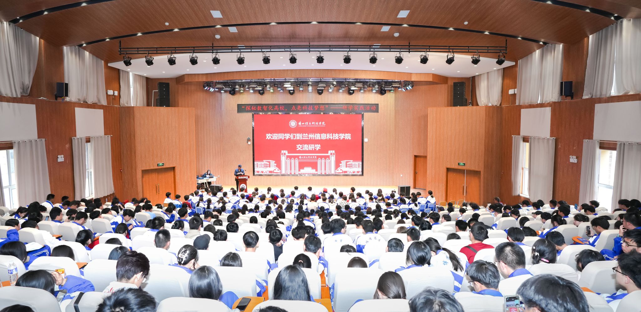 欢迎会上,学校招生办公室对同学们的到来表示欢迎并对学校情况、院系专业设置、实验实训条件、住宿环境等方面进行详细介绍与展示,同学认真聆听并记录关键信息。