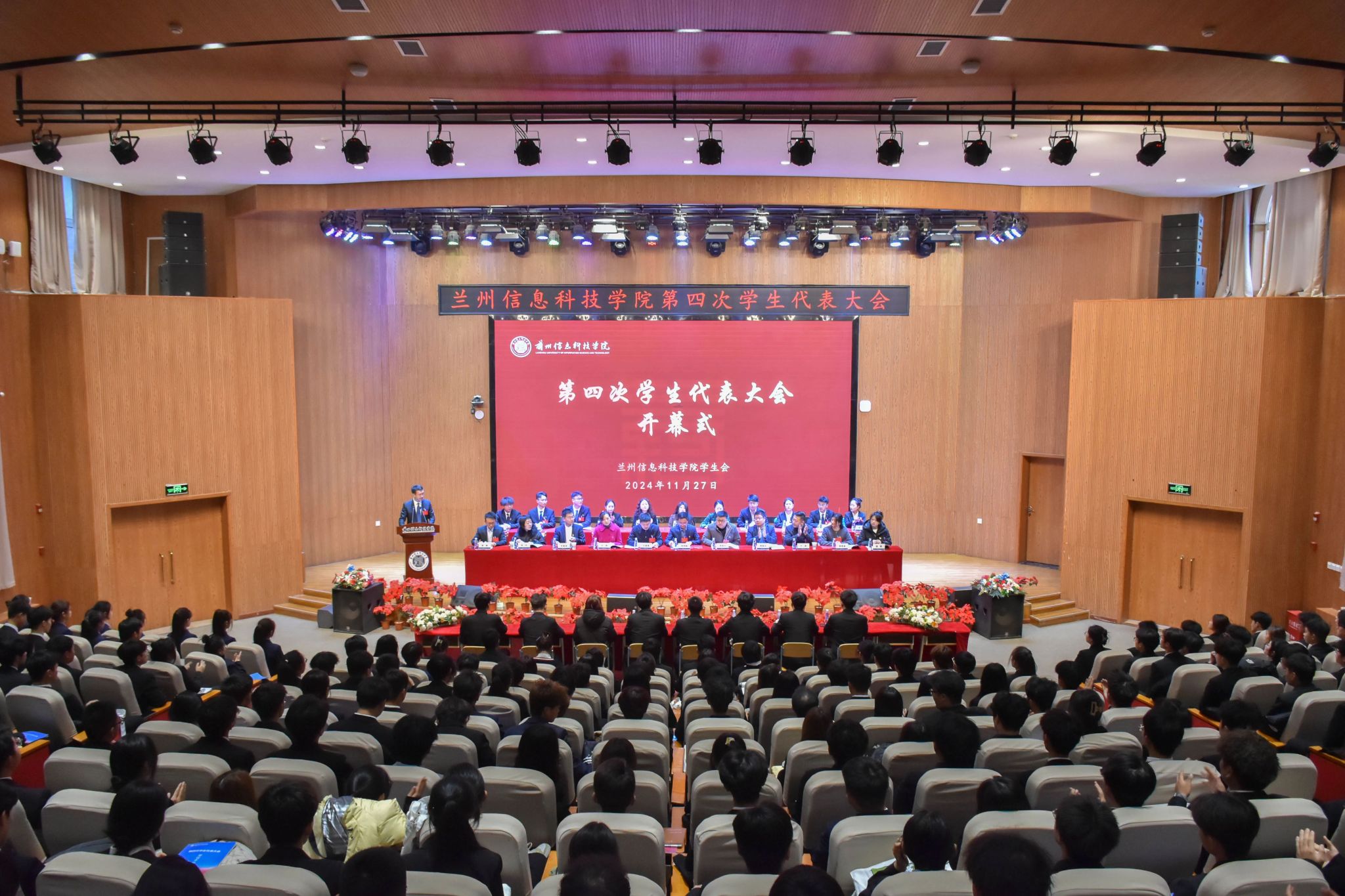 甘肃省学生联合会驻会主席任晨隆,开元集团网站校长助理朱明敏、苏存兴以及相关职能部门负责人出席会议,兰州工业学院、甘肃卫生职业学院、兰州现代职业学院、甘肃交通职业技术学院、兰州石化职业技术大学、甘肃财贸职业学院等兄弟院校团委书记到会祝贺。学校各二级学院团总支书记以及本次代表大会筹备委员会成员、全体学生代表参加会议。