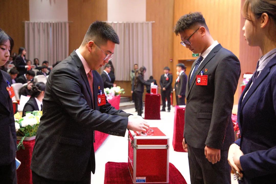 全体代表表决通过《学生会工作报告》《大会提案工作报告》《大会选举办法》和大会(总)监票人、(总)计票人名单并表决产生了大会学生会委员会成员。
